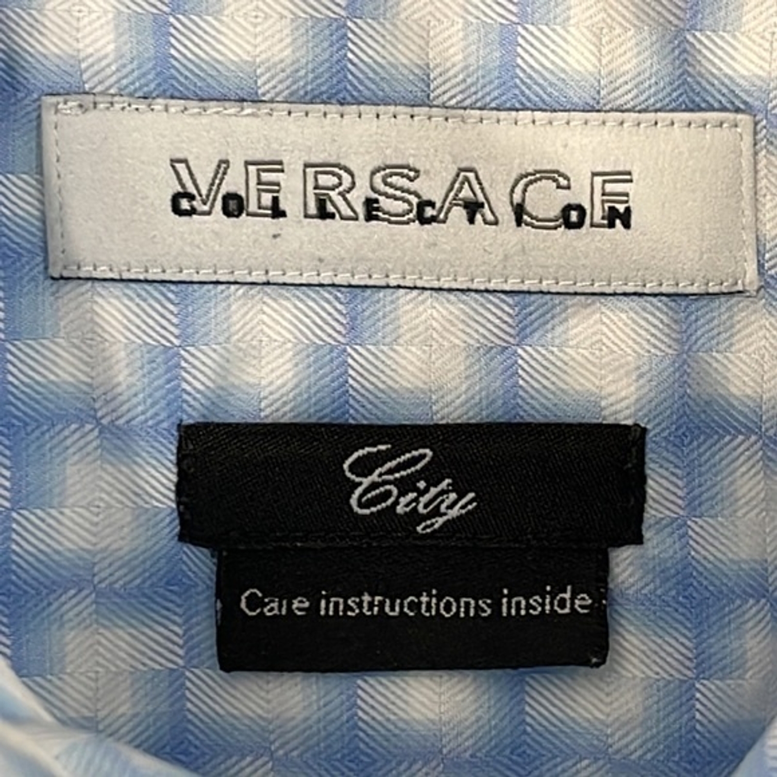как выглядит Versace Collection City men s Size 39/15.5 blue white dress shirt. EUC фото