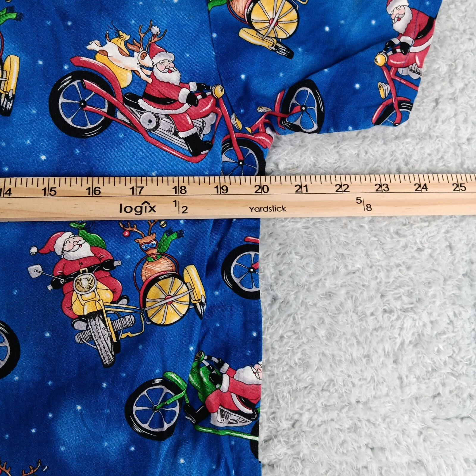 Peaches Uniforms Scrub Top Womens XS Blue Santa Christmas Medical V-Neck