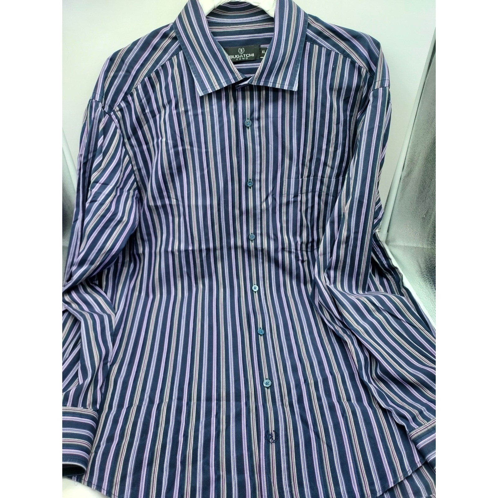 как выглядит Bugatchi Uomo Striped Dress Shirt Mens XL Extra Large Purple Blue Cotton фото