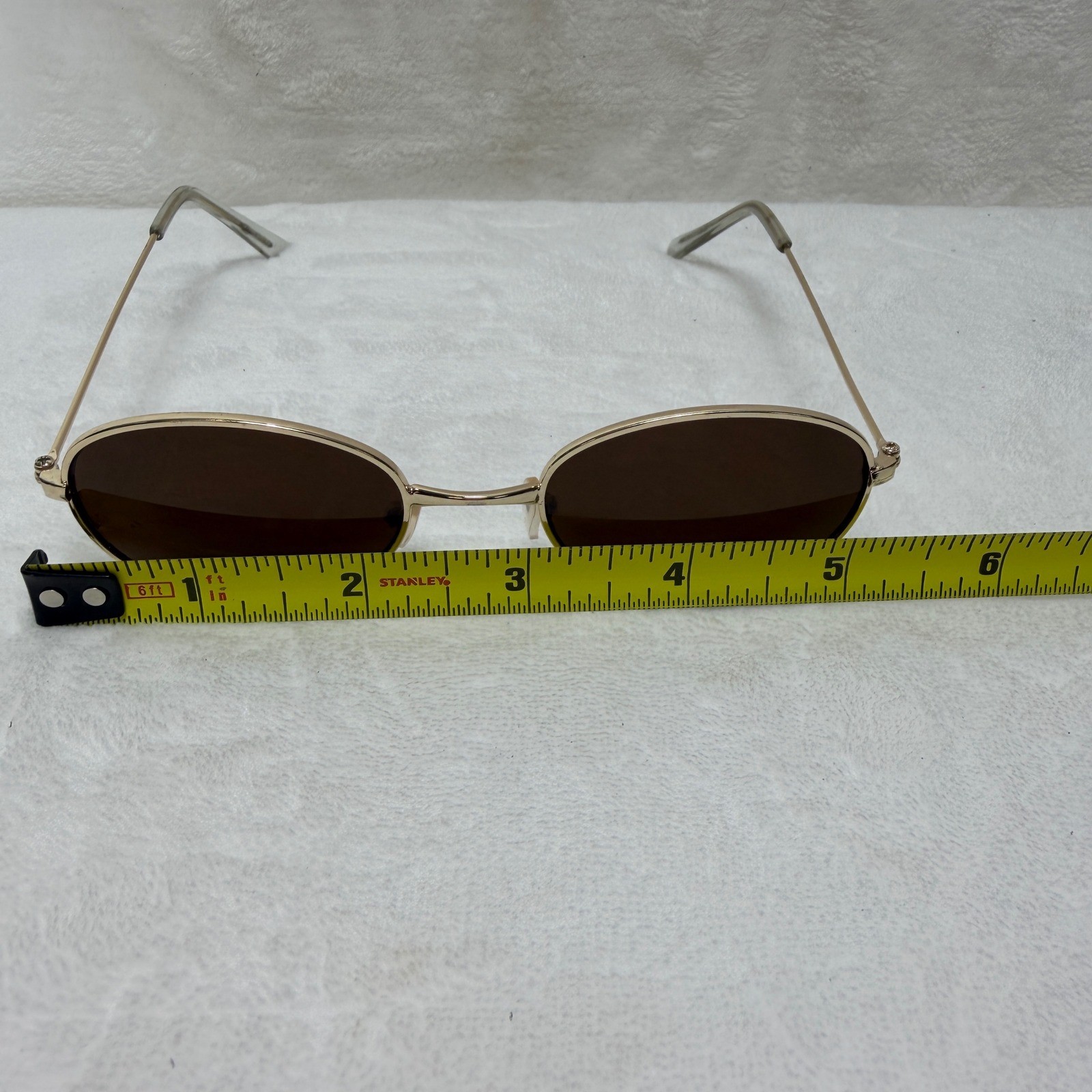 как выглядит VTG Oval Gold Metal Frame Sunglasses Brown Tinted Lens 90s Retro Style Hippie фото
