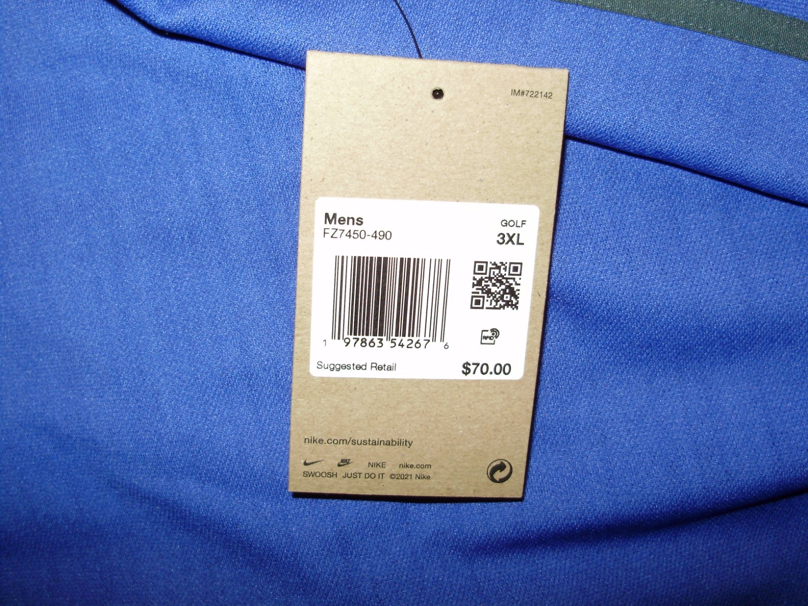 Nike Dri-Fit FZ7450-490 Victory Heathered Astronomy Blue Polo Golf Shirt Men 3XL