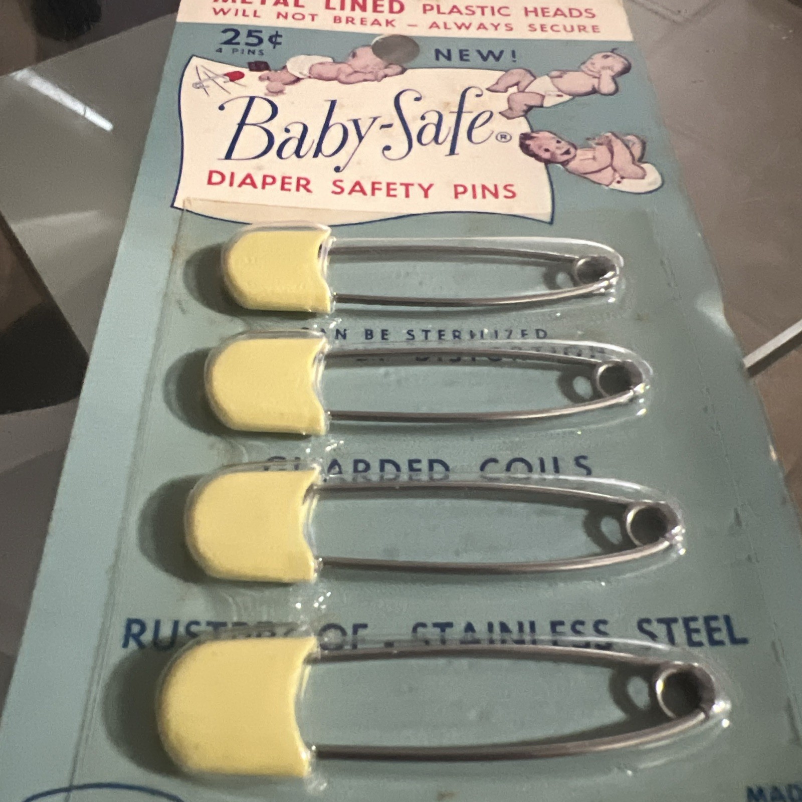 Vintage Mid-Century white diaper safety pins