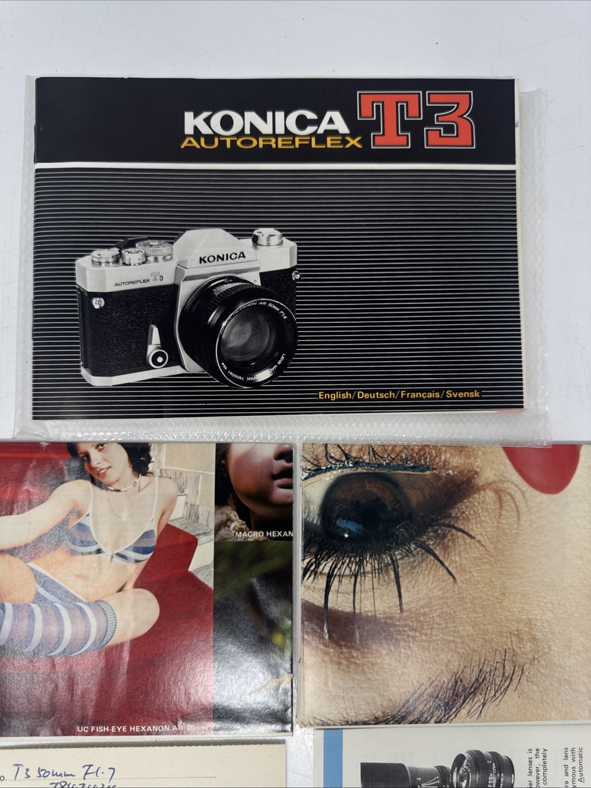 Konica Autoreflex T3 Owners / Instruction Manual With Inserts And Sleeve