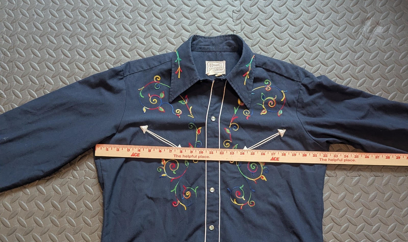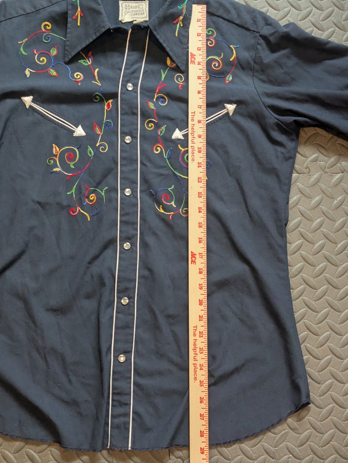 как выглядит Vintage 1960s H Bar C CA Embroidered Pearl Snap Blue Western Cowboy Shirt M/L фото