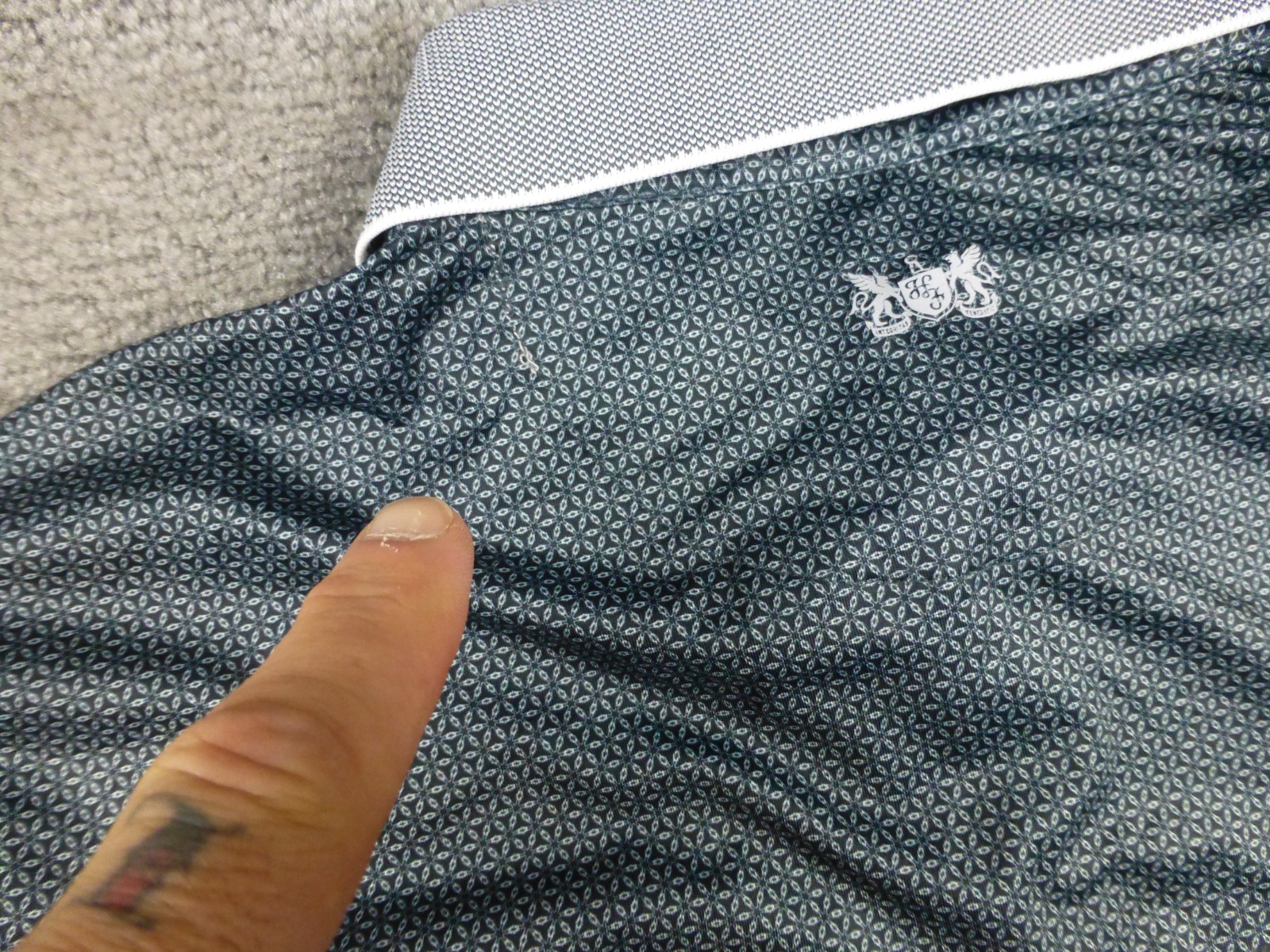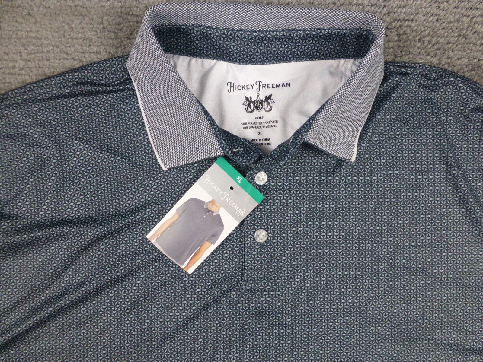 как выглядит HICKEY FREEMAN Mens Short Sleeve Polo Shirt Stretch Grey Geometric AOP XL NWT фото
