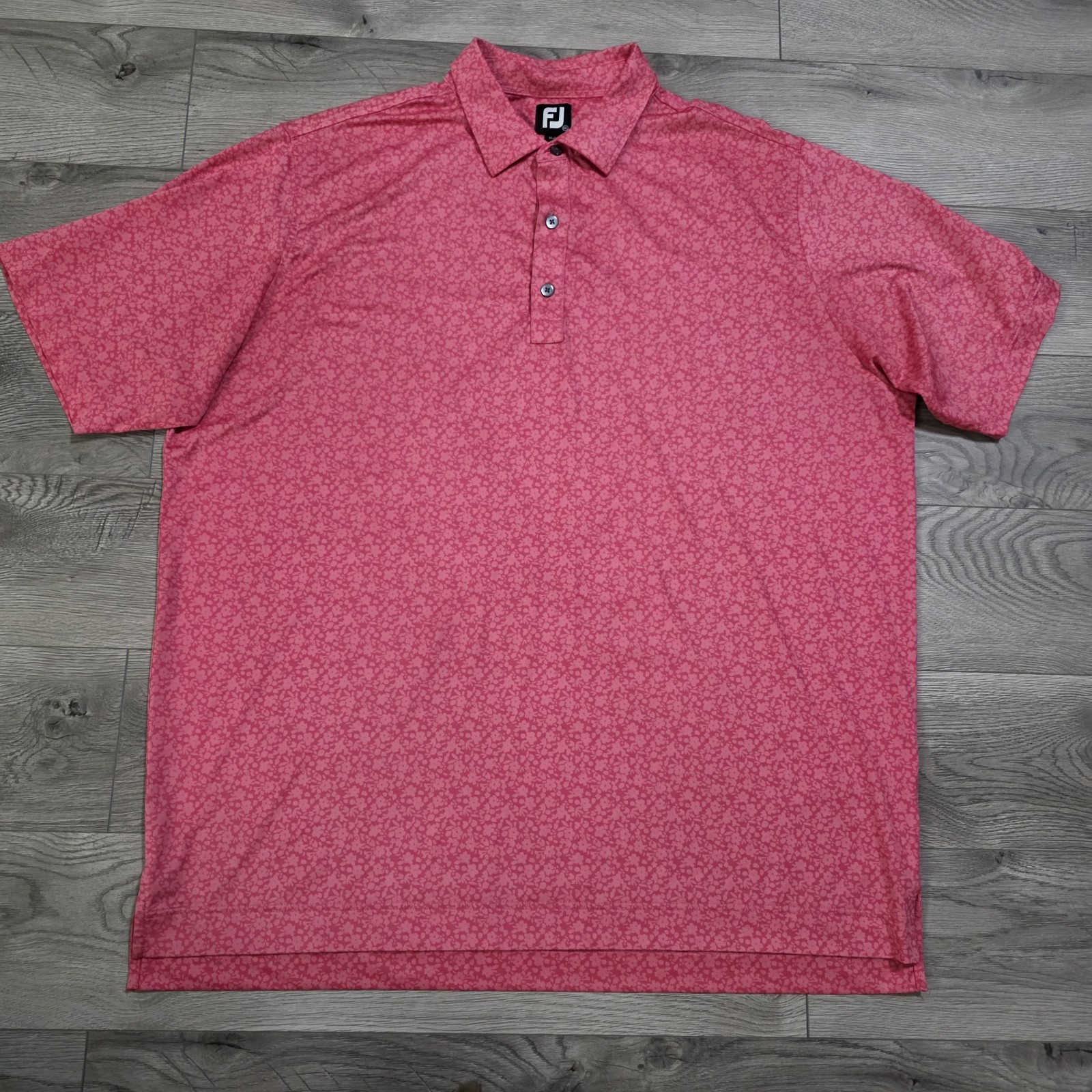 как выглядит FOOTJOY FJ Mens 2XL Pink Floral Flowers Performance Golf Polo Shirt Stretch фото
