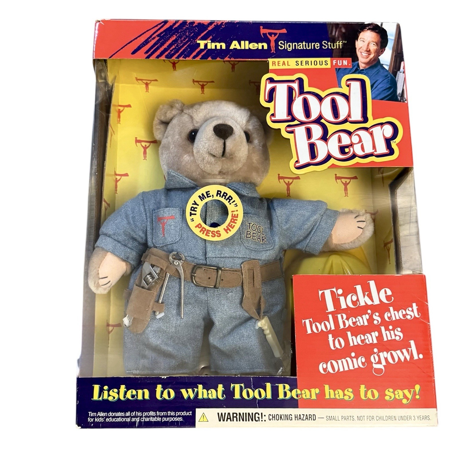 TIM ALLEN Interactive Vintage TOOL BEAR Tool Belt Hard Hat Helmet Plush Figure