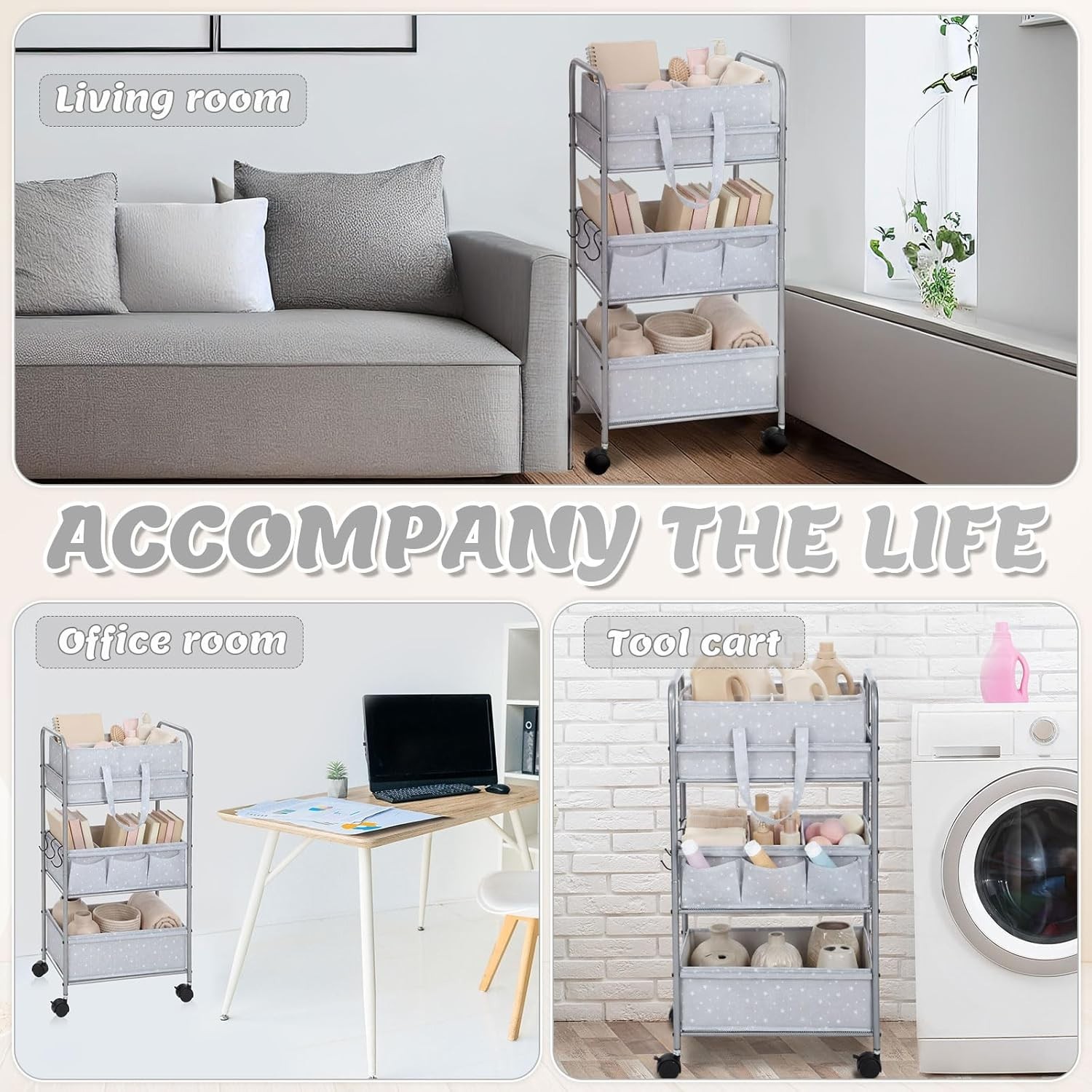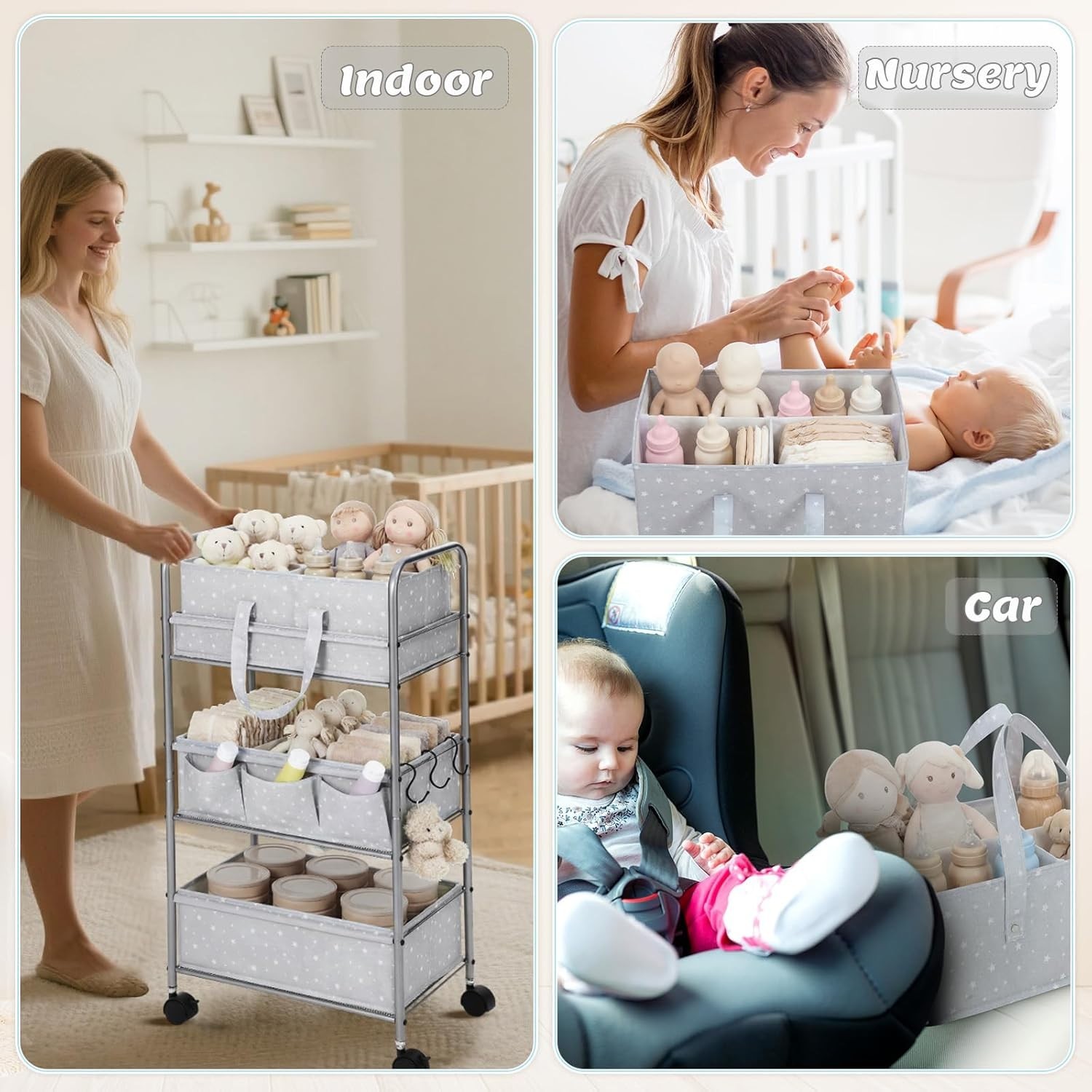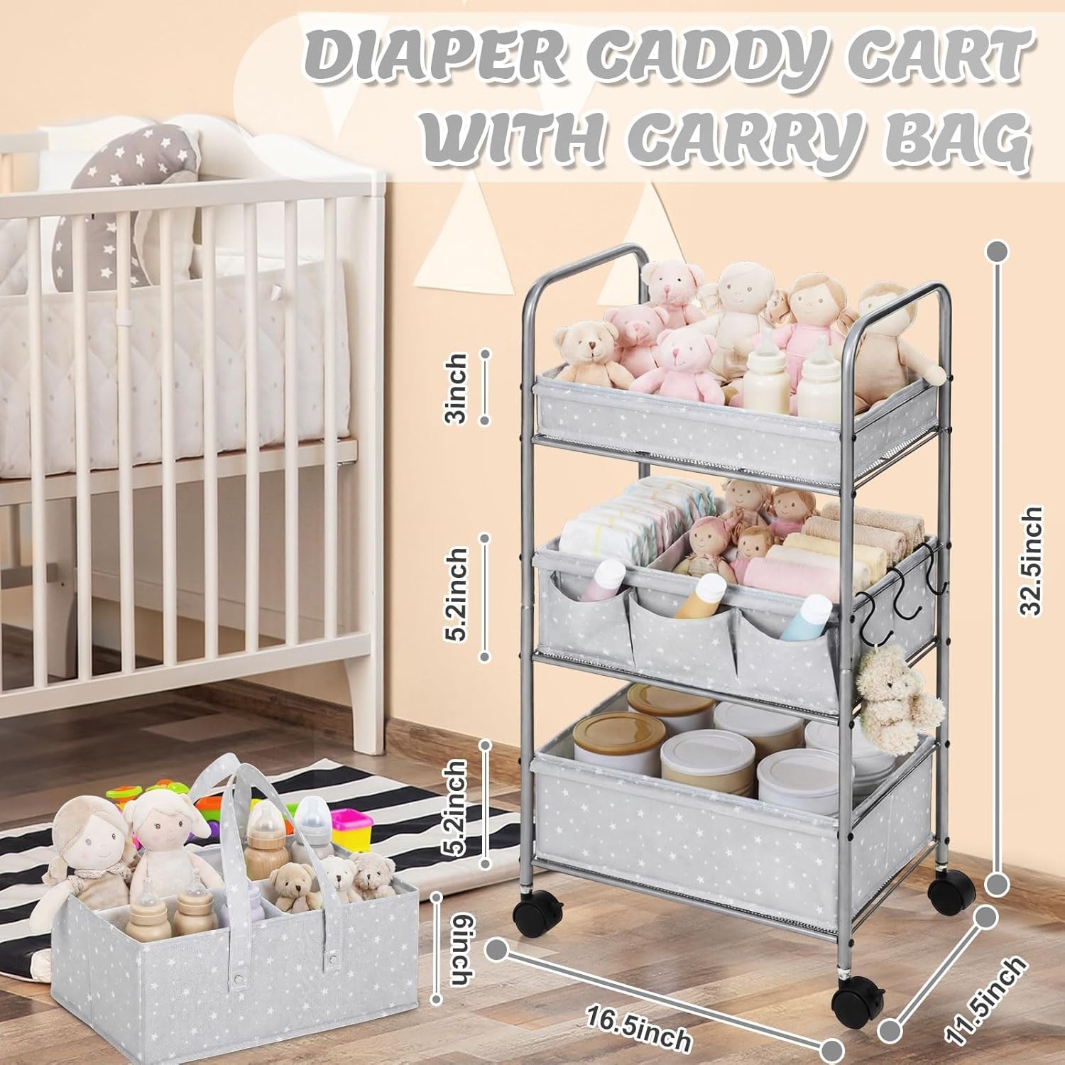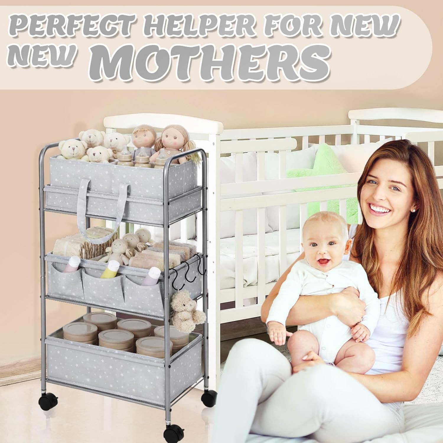 2in1 Baby Diaper Caddy Organizer Cart 3 Tier Large Capacity Metal Utility