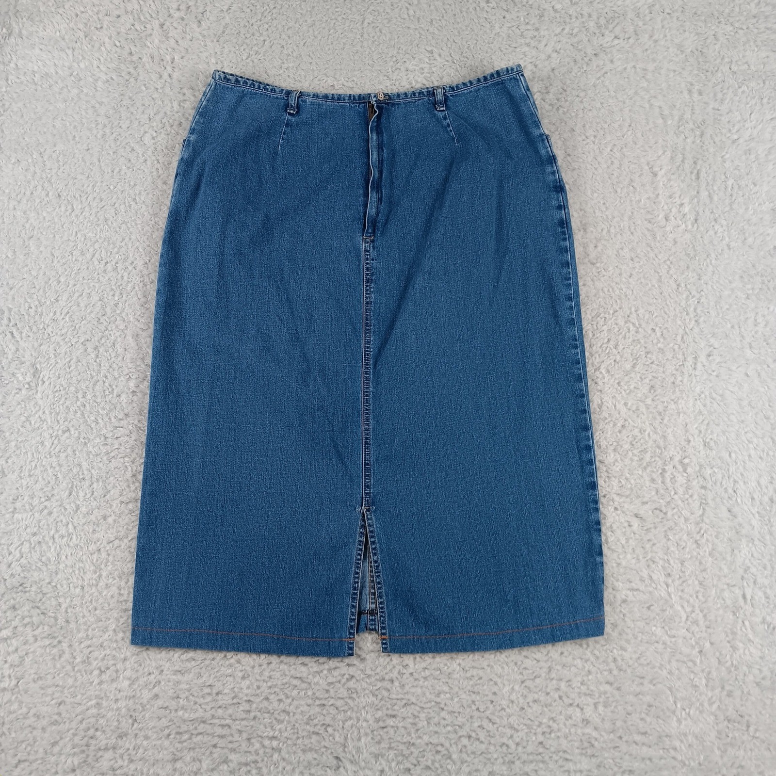 Old Navy Blue Jeans Denim Midi Skirt Size 16 Medium Wash Back Slit Straight