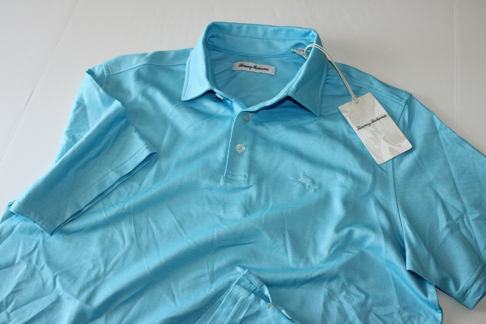 Tommy Bahama Polo Shirt On Par Breeze Blue Marlin Logo T215232 SS New Medium M