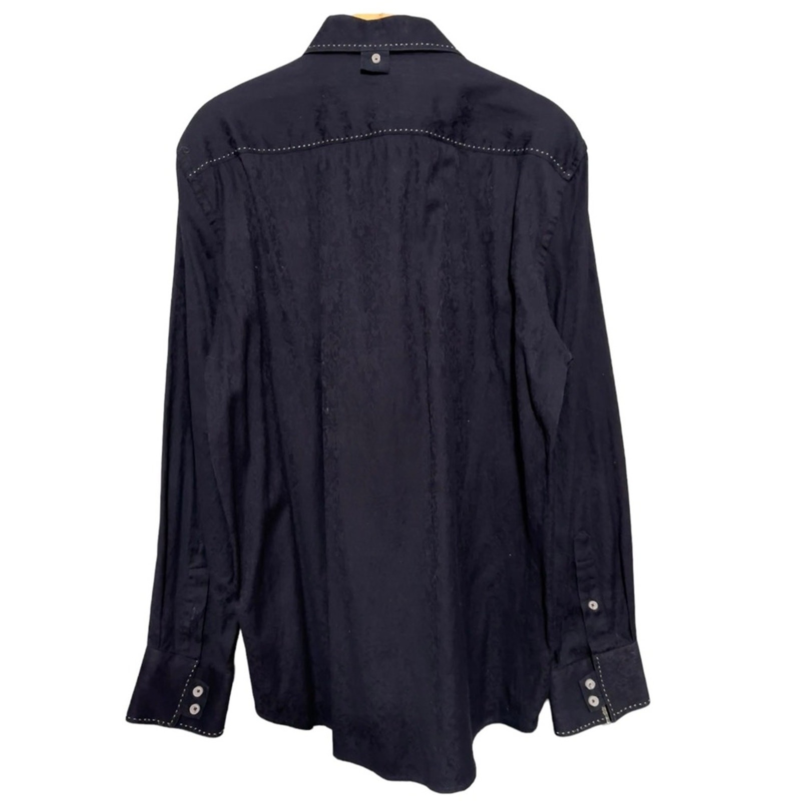 как выглядит Zagiri Men s Size L Midnight Navy Blue Patterned Fold Cuff Button Down Shirt фото