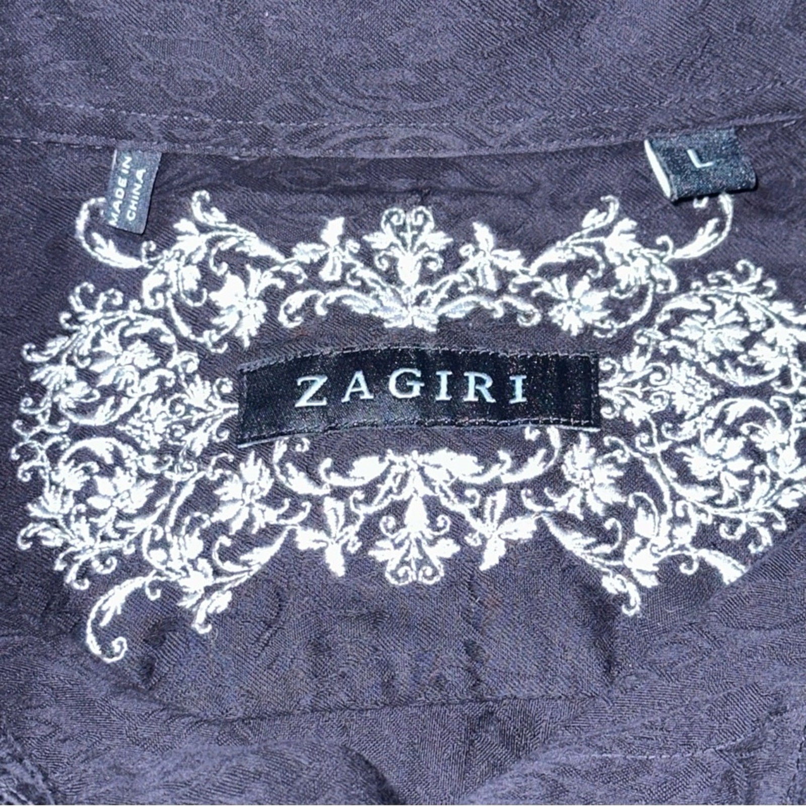 Zagiri Men s Size L Midnight Navy Blue Patterned Fold Cuff Button Down Shirt