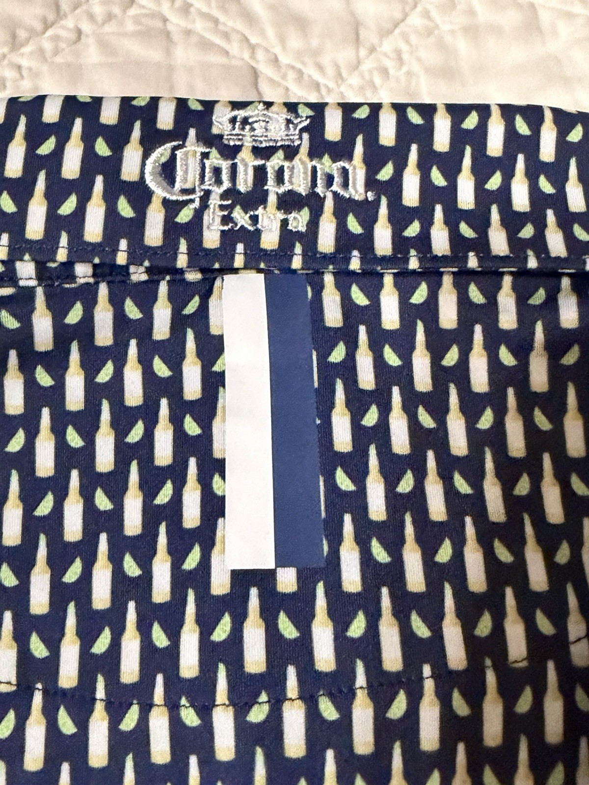 Rhoback Men's XL Blue Beer Bottle Lime Print Performance Golf Polo Shirt Stretch