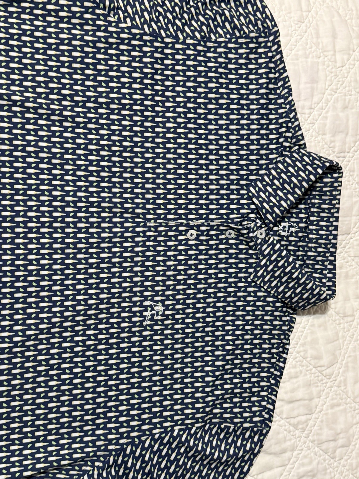 как выглядит Rhoback Mens XL Blue Beer Bottle Lime Print Performance Golf Polo Shirt Stretch фото