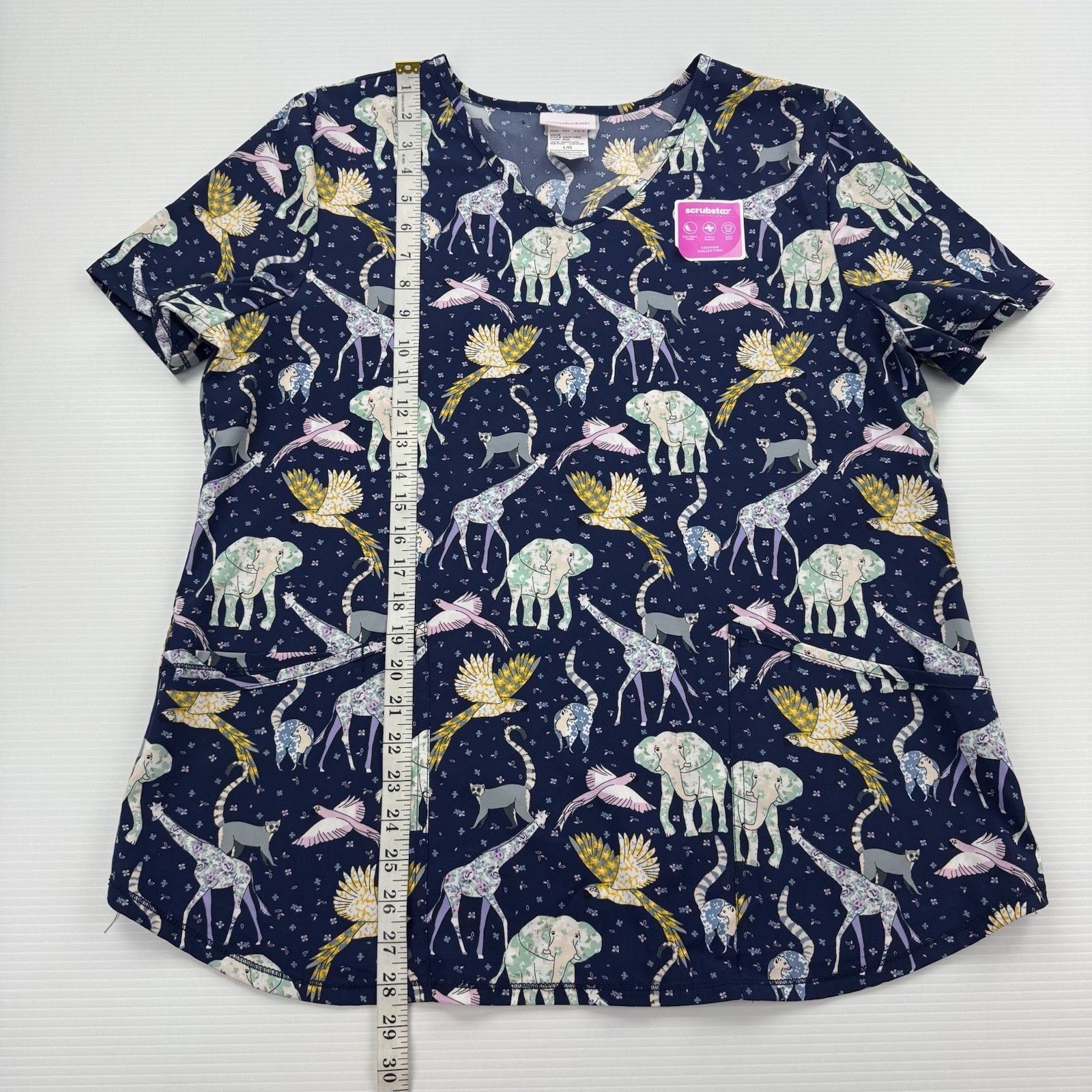 как выглядит Scrubstar Scrub Top Womens L Animal Print V Neck Stretch Medical Uniform фото