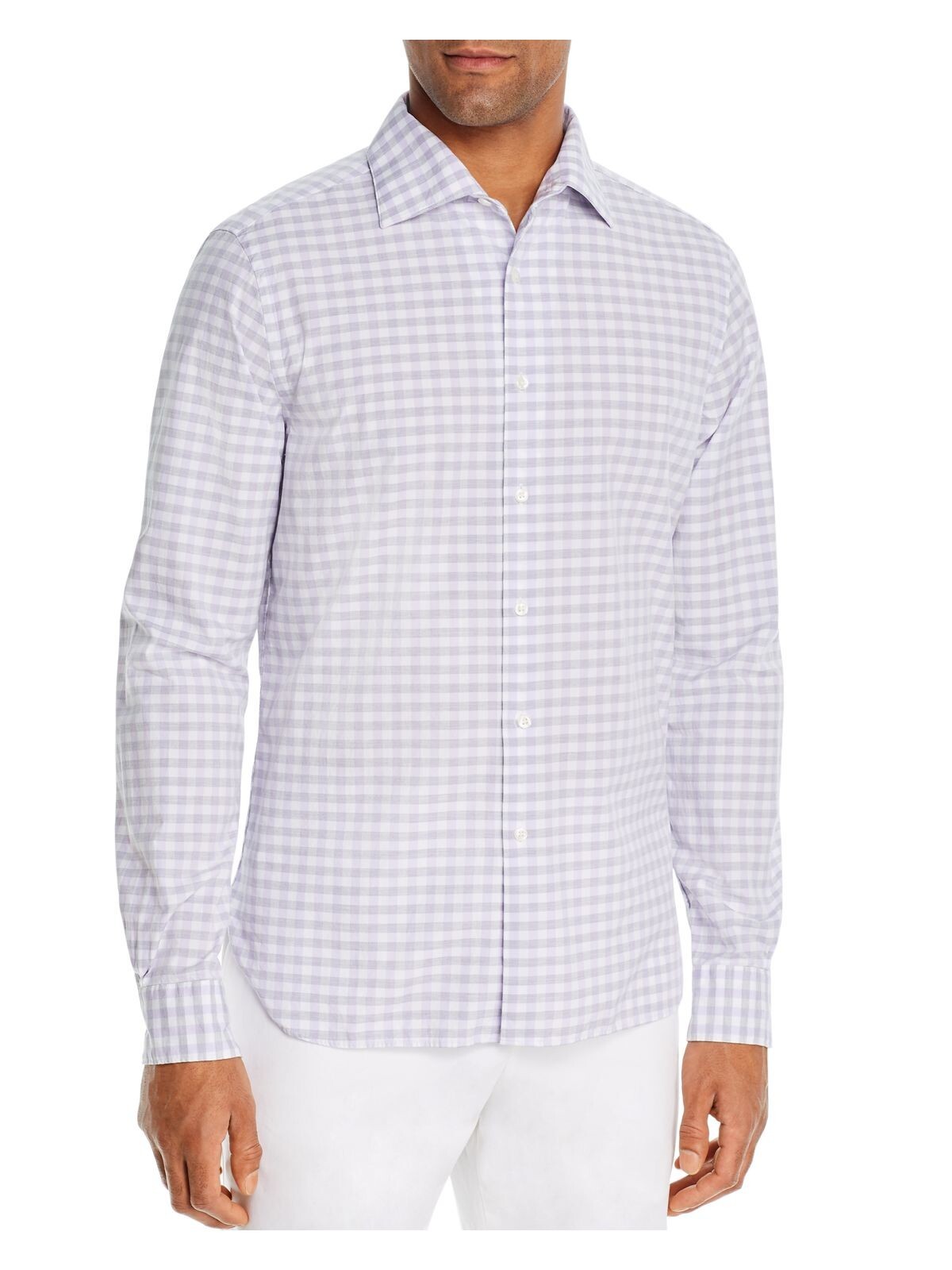 Designer Brand Mens Purple Gingham Classic Fit Button Down Casual Shirt L