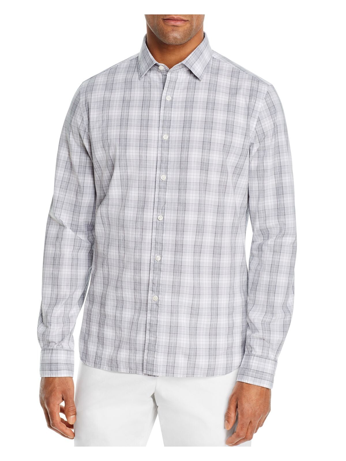 Designer Brand Mens Gray Tartan Plaid Collared Shirt S