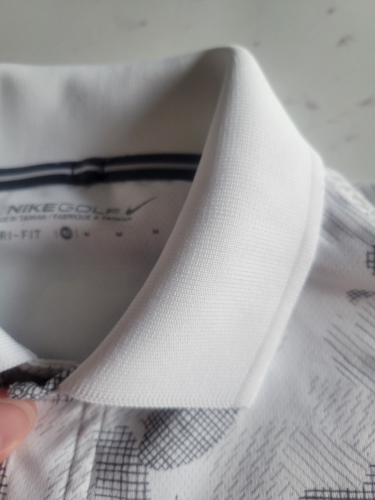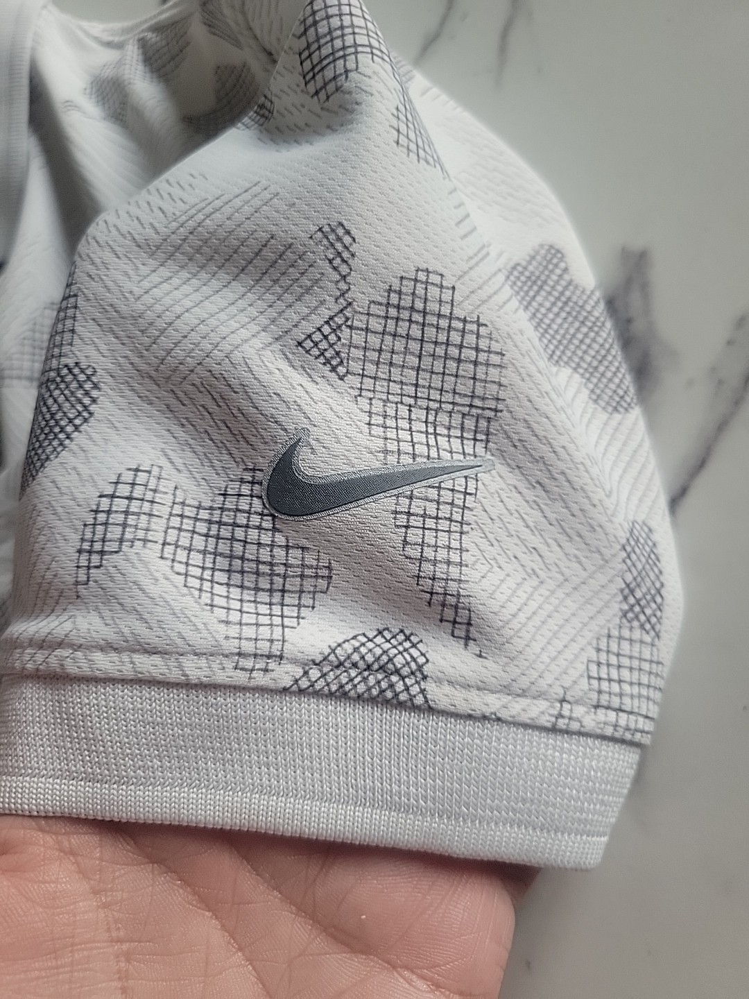 как выглядит Nike Youth Medium Boys Polo Standard Fit Collared Golf White Grey Camo Dri-fit фото