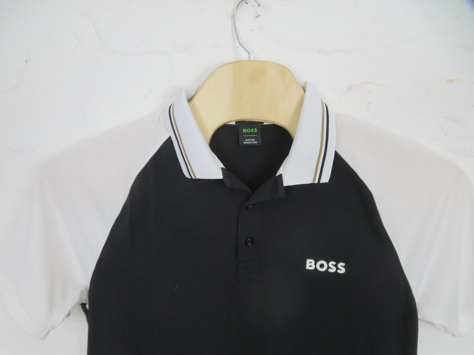 Hugo Boss x Matteo Berrettini Polo Shirt Mens XL Black White Tennis Stretch Slim