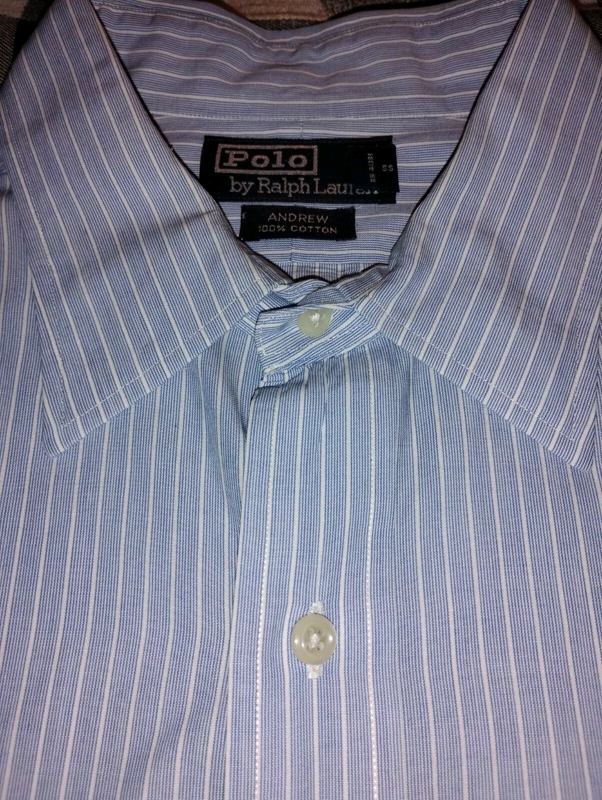 как выглядит Polo by Ralph Lauren Andrew Dress Shirt Mens 17 32/33 Blue Pinstripe - Z фото