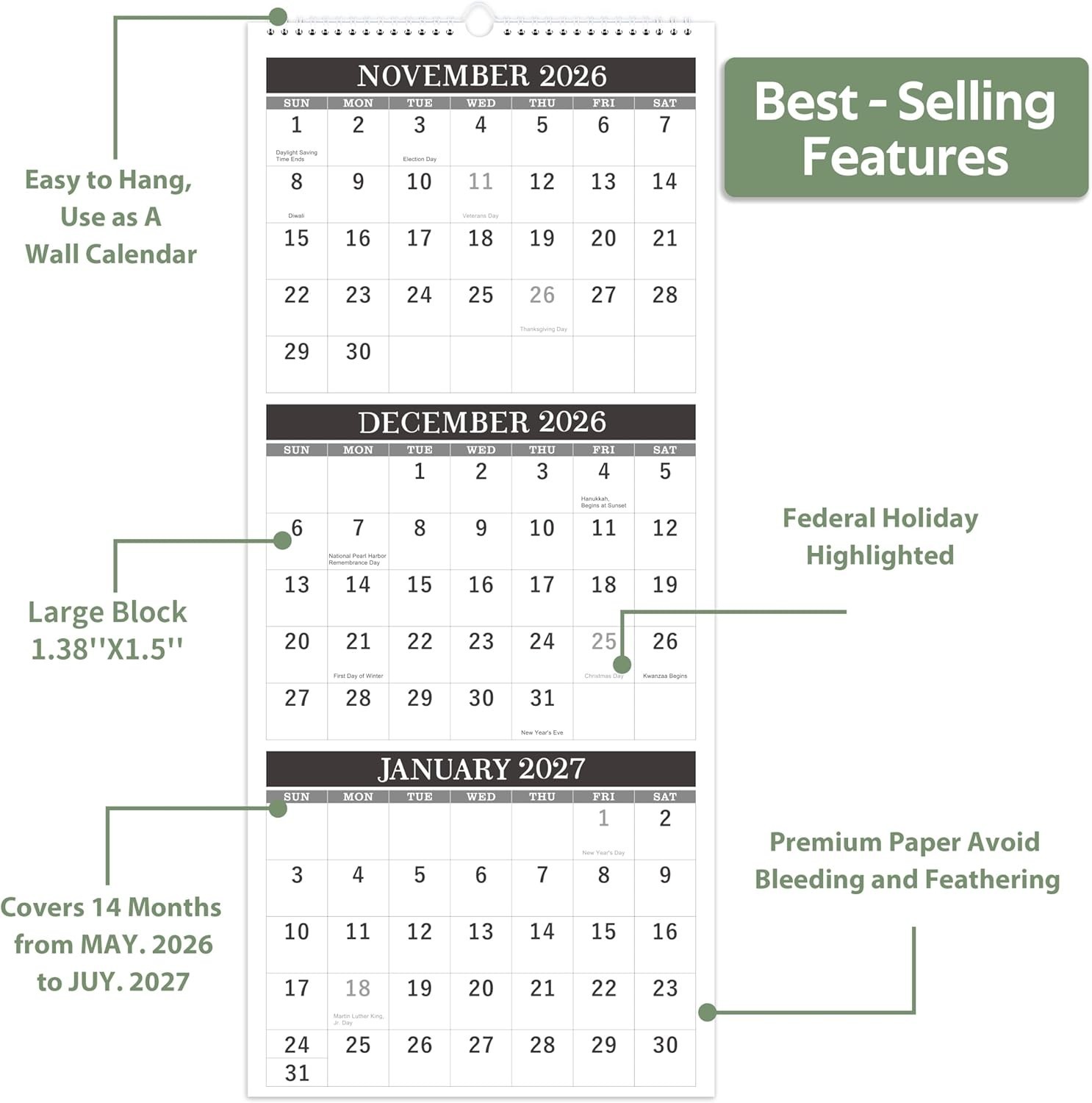 как выглядит Calendar 2026-2027 - Wall Calendar 2026-2027, April 2026 - July 2027, 11" x 2... фото