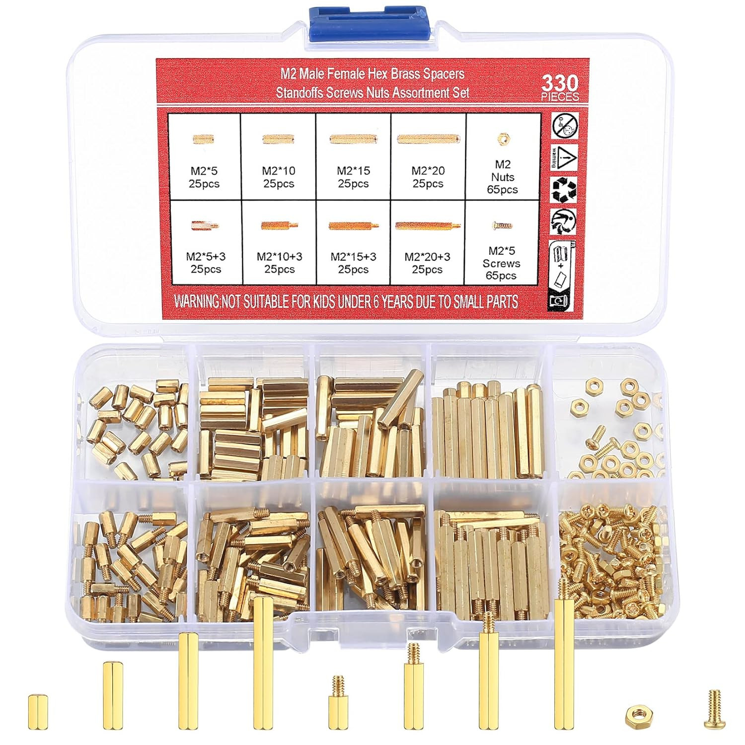 • 330 Pcs Brass M2 Hex Spacer Standoffs, Screws Nuts Assortment Kit, PCB Circuit B