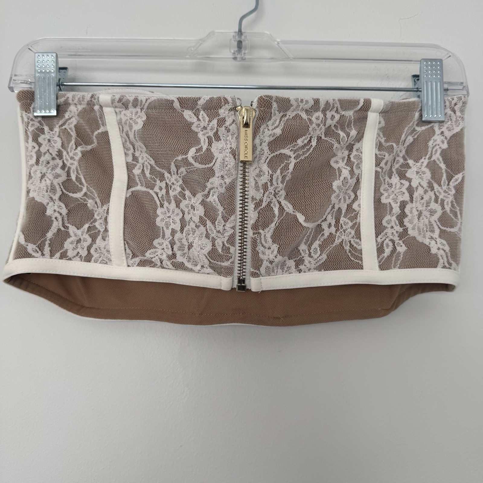 Miss Circle NY White Lace Bustier Crop Top Women s L Nude Corset Fairycore Party