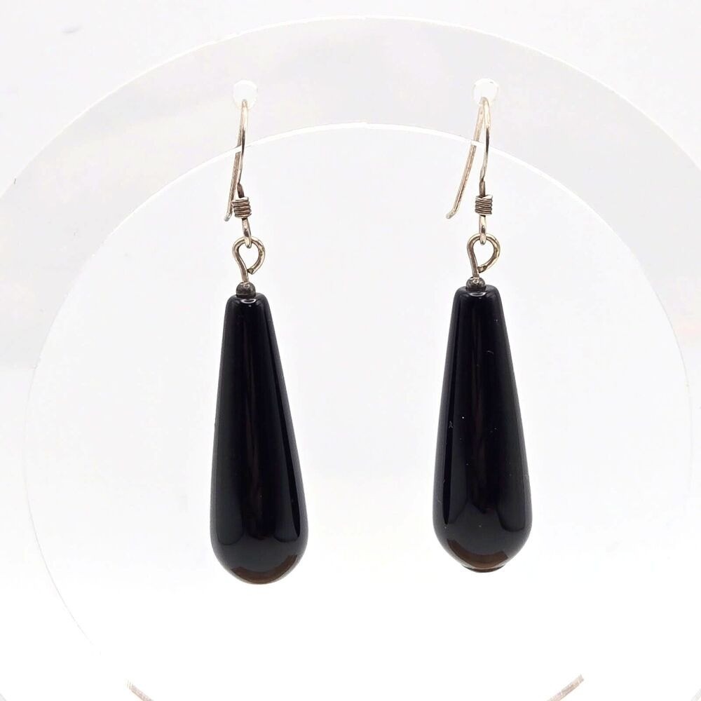 как выглядит Black Teardrop Onyx on 925 Sterling Silver Hooks Dangle Drop Earrings фото