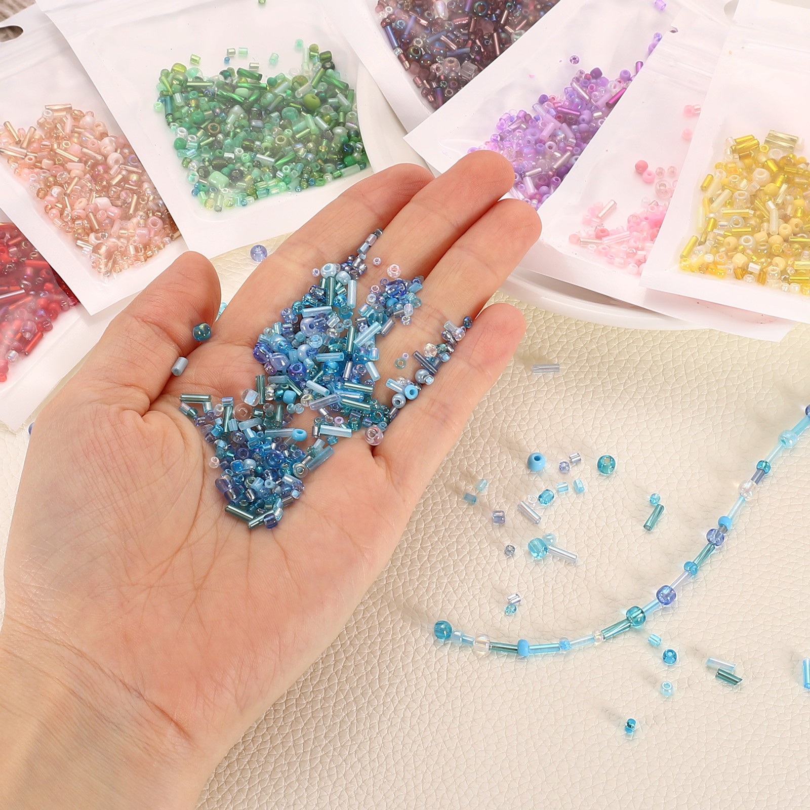 2000Pcs Mixed Glass Beads, Seed Tube Bugle Loose Spacer Craft Beads, Purple