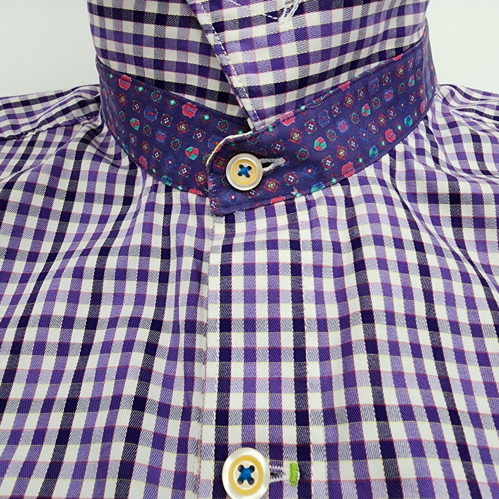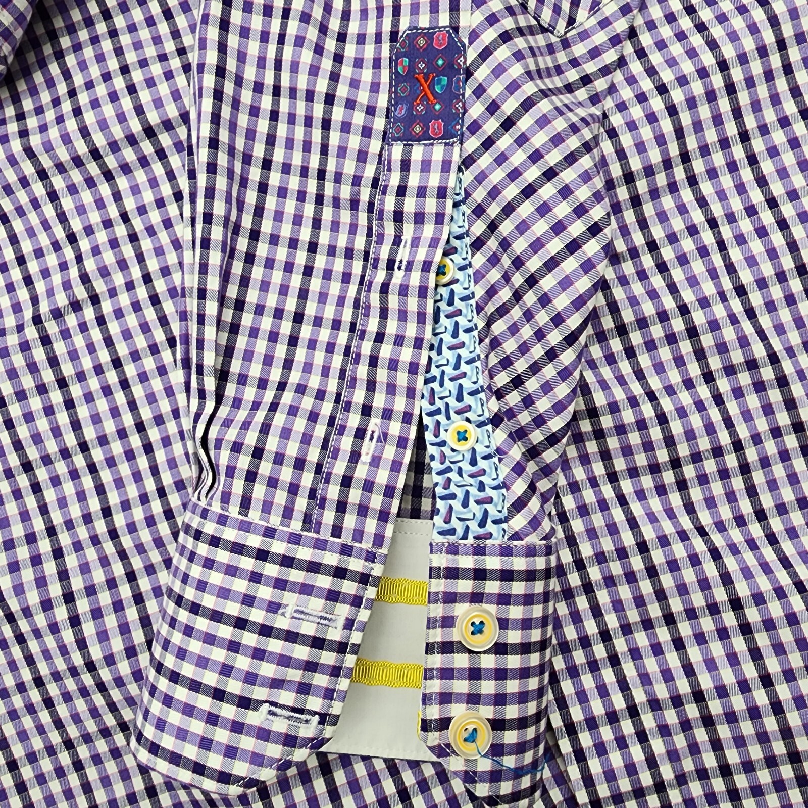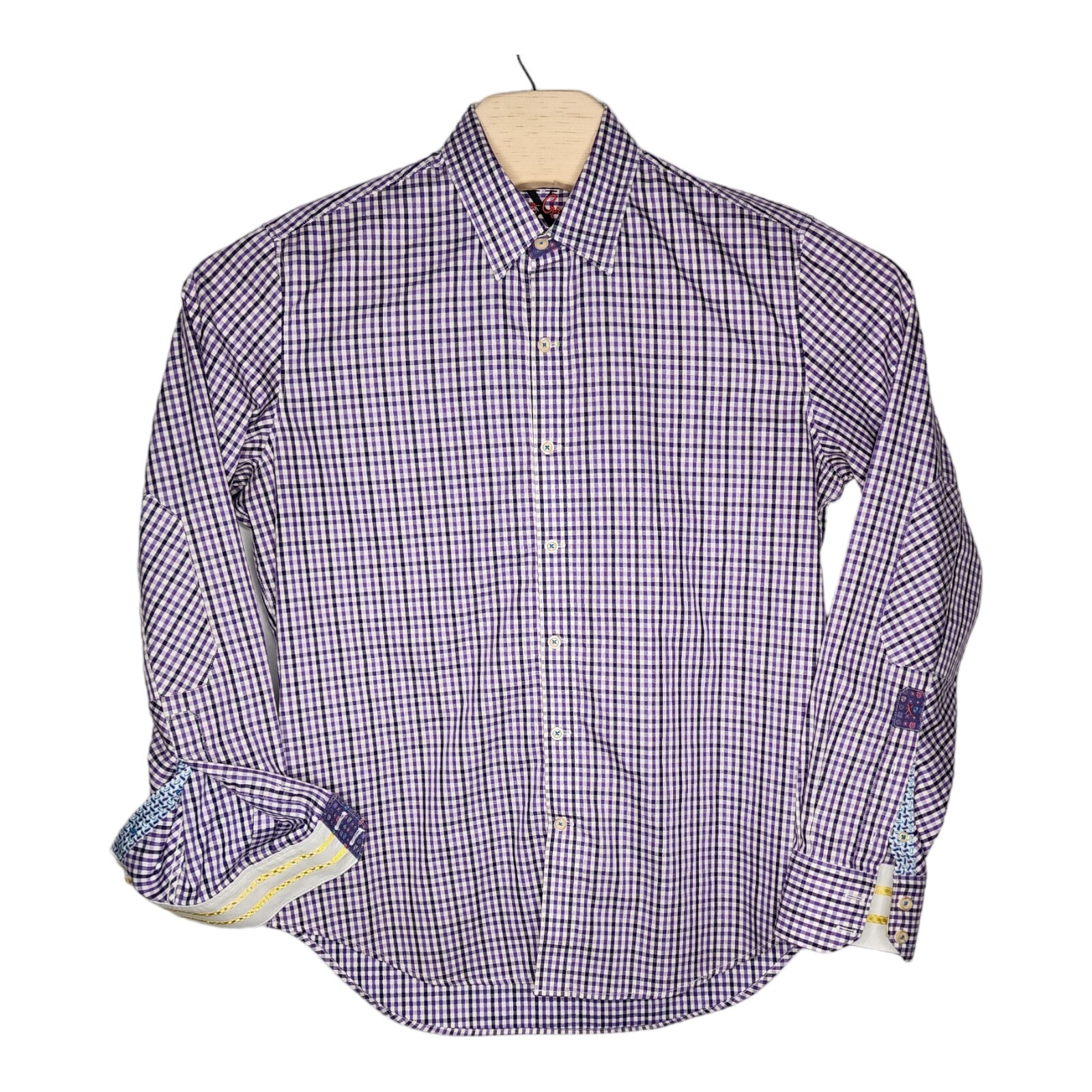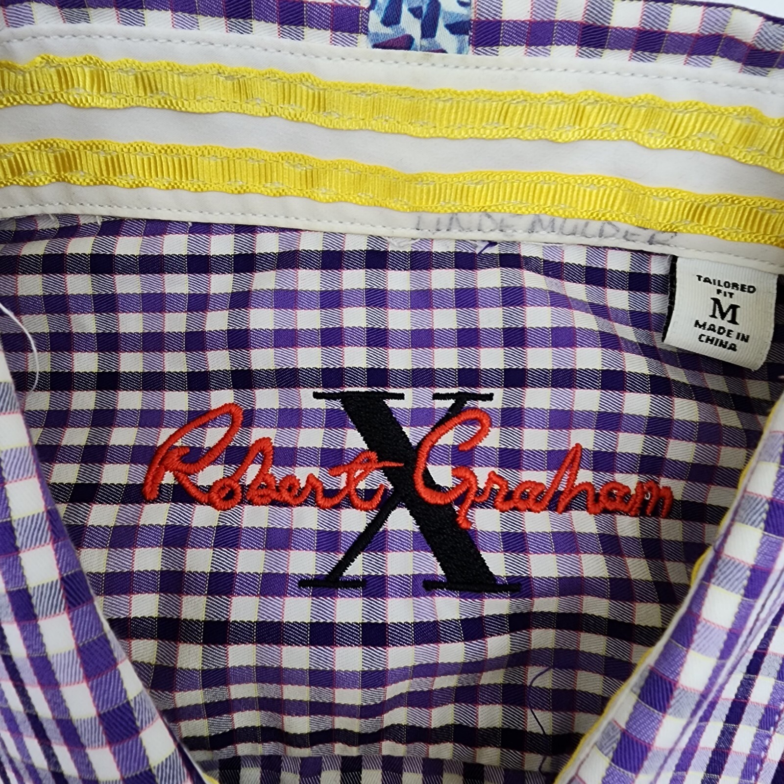 Robert Graham Men's Shirt Size M Flip Cuff Checkered Purple White Button-up