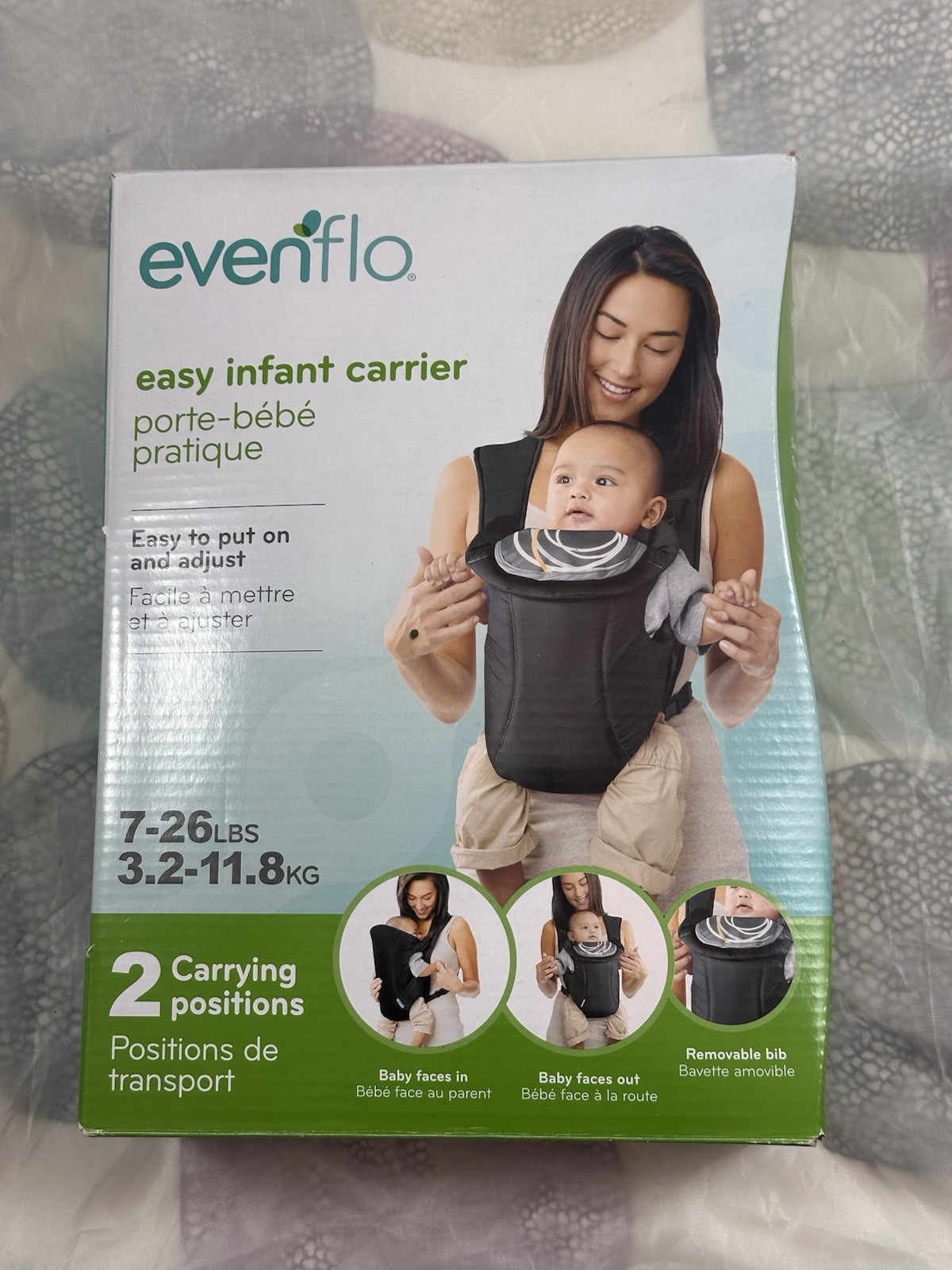 как выглядит Evenflo Infant Soft Baby Carrier Creamsicle - Black 7-26lbs Open Box New фото