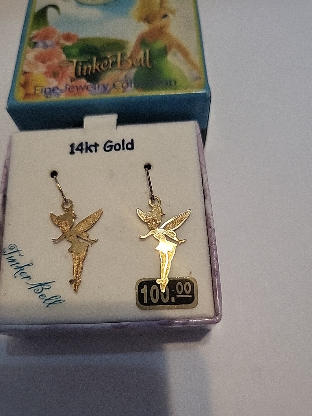 как выглядит 14k Gold Tinkerbell Dangle Earrings Official Disney Fine Jewelry Collection NIB фото