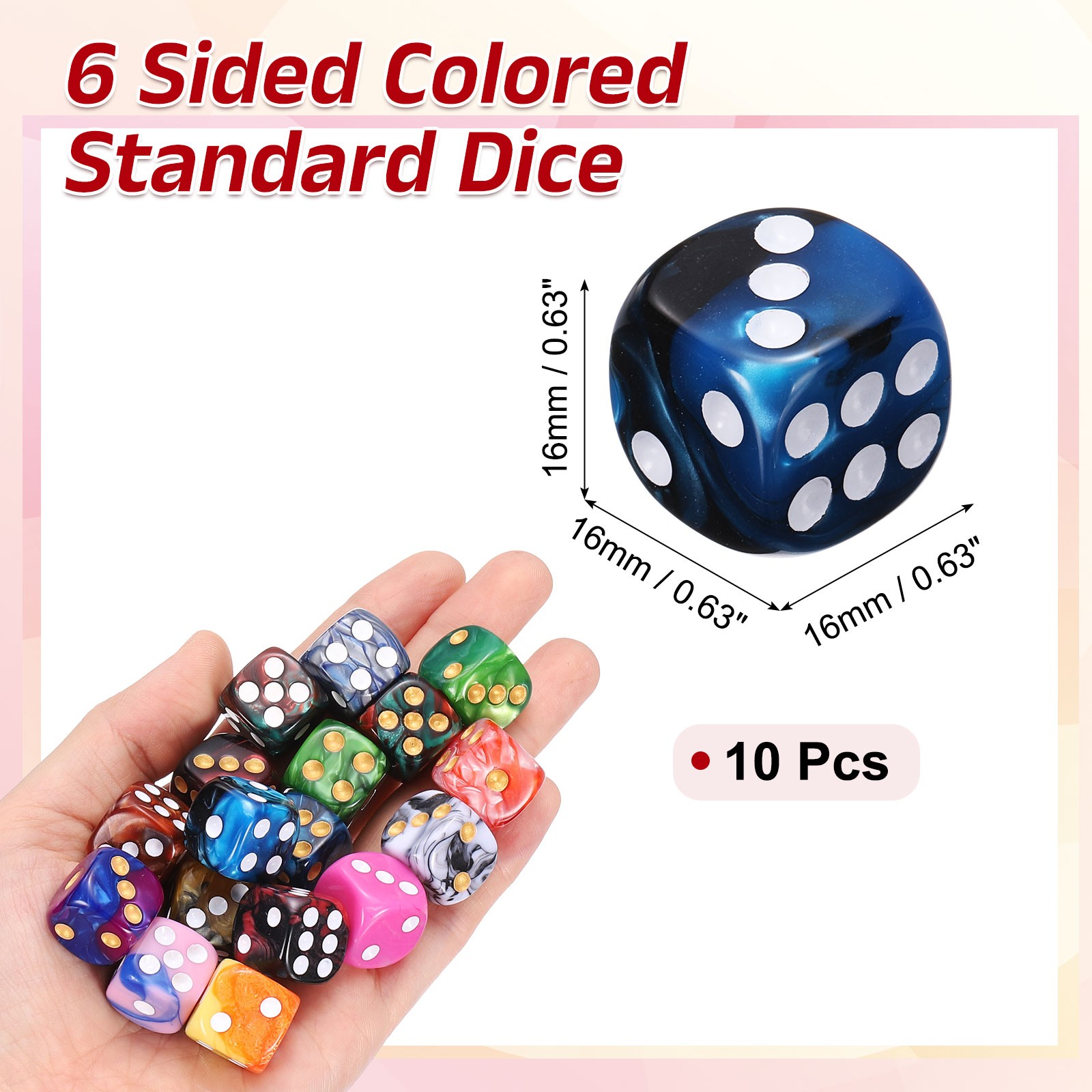 10Pcs 6 Sided Colored Standard Dice, Acrylic D6 Game Dice, Black/Blue, White