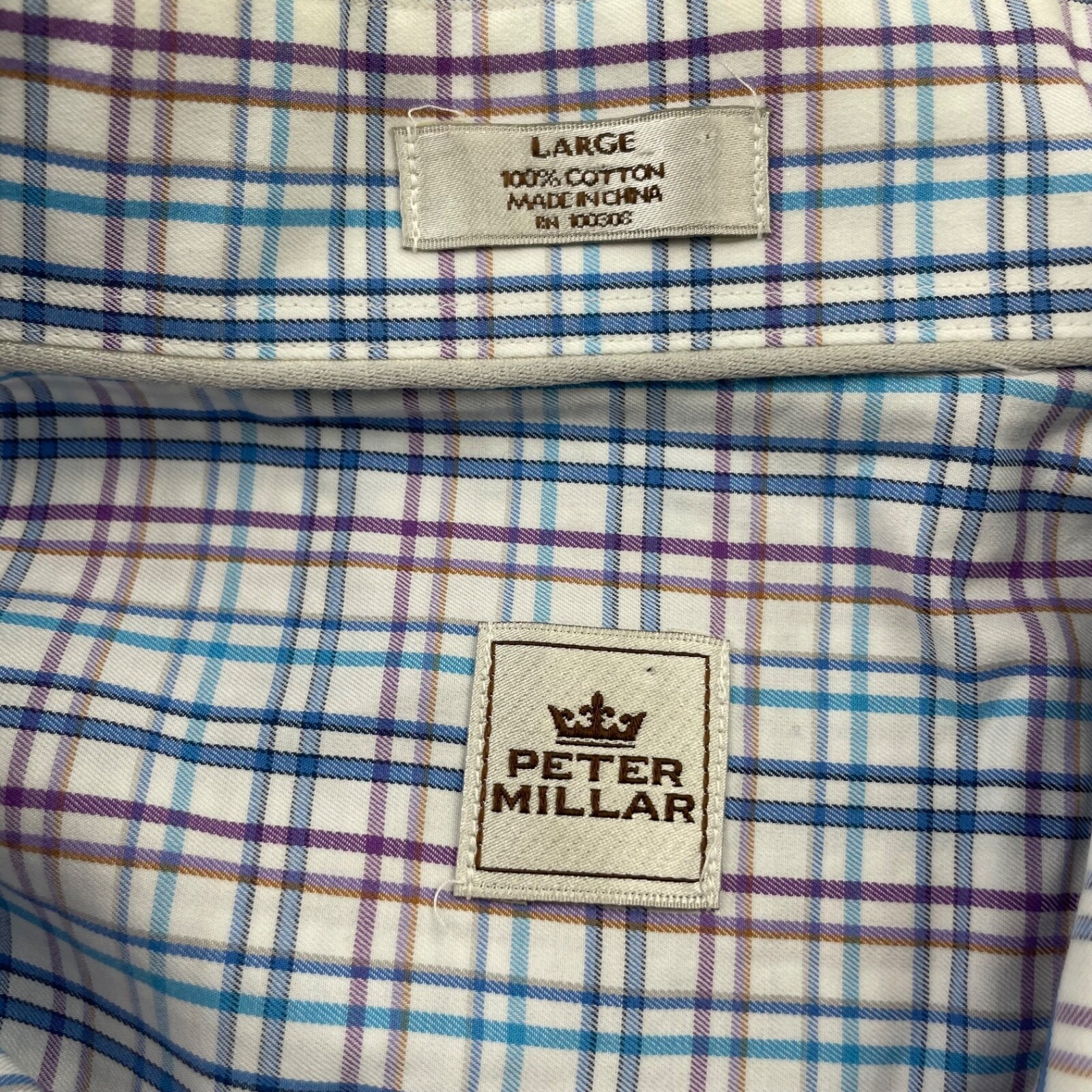 Peter Millar Men's 100 Cotton L/S Button Shirt Purple/Brown/Blue Plaid Large