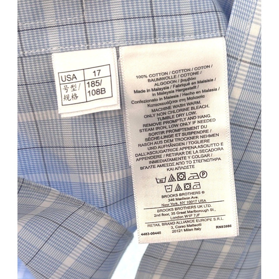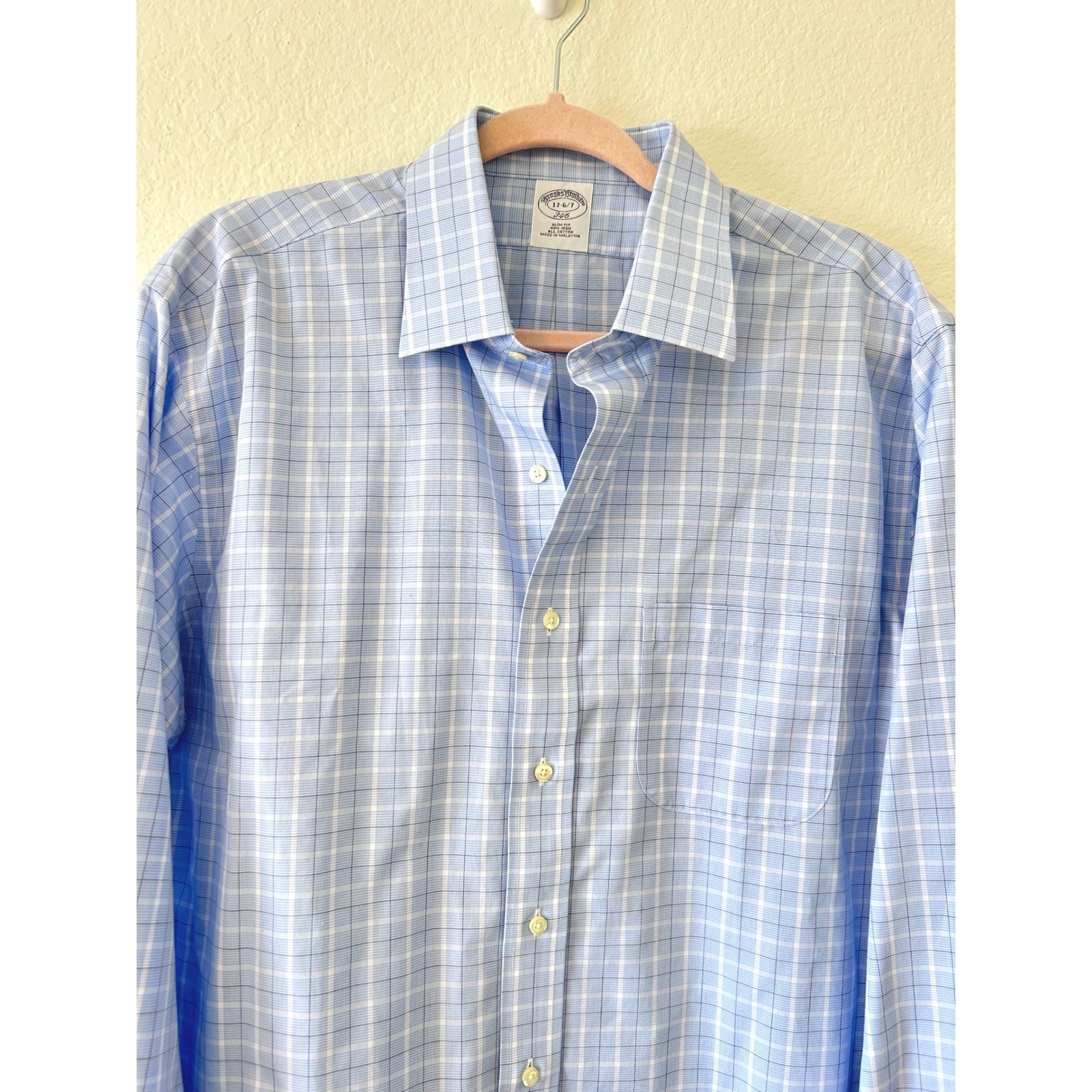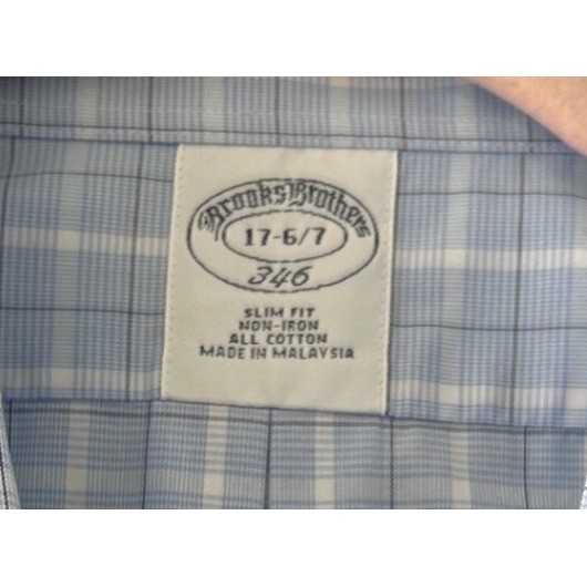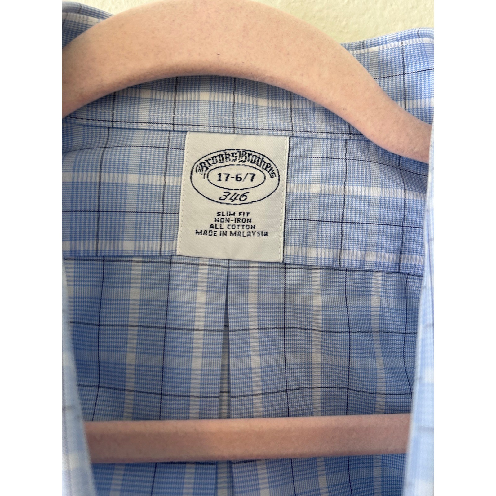Brooks Brothers 346 Slim Fit Non Iron Cotton Blue Plaid Dress Shirt SZ 17 6/7