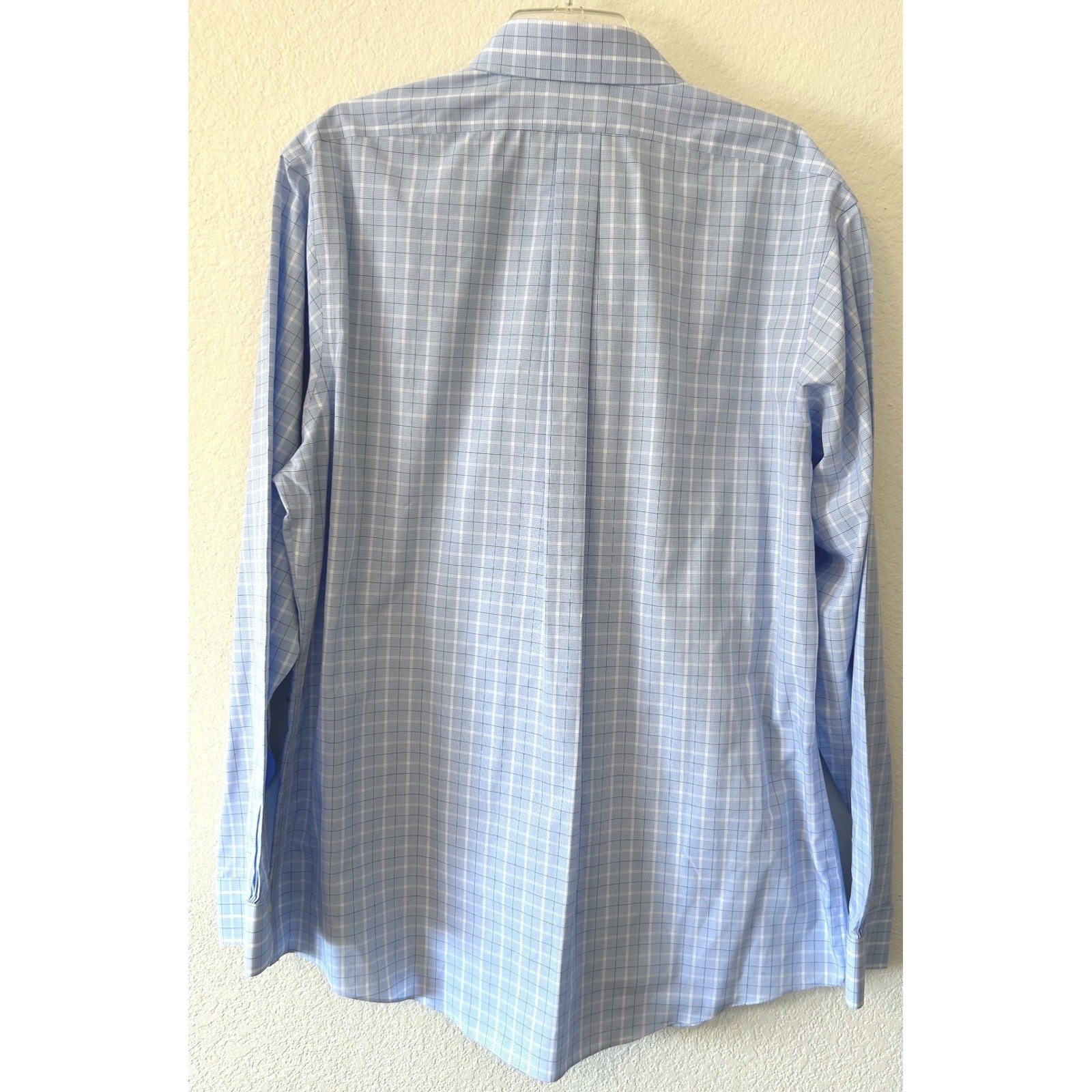 как выглядит Brooks Brothers 346 Slim Fit Non Iron Cotton Blue Plaid Dress Shirt SZ 17 6/7 фото