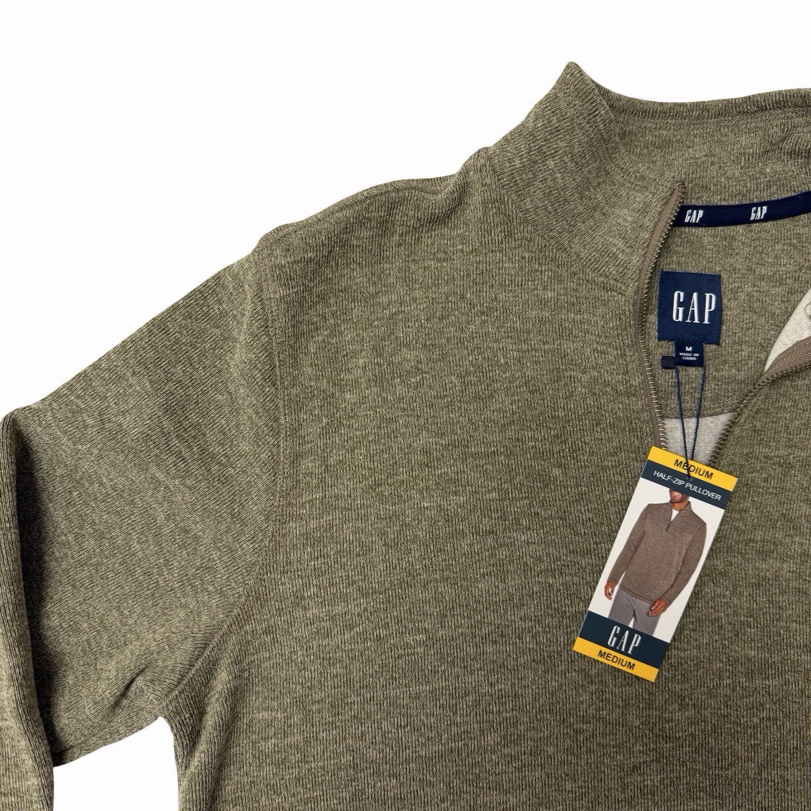 NWT Gap Men's Long Sleeve 1/4 Zip Mock Neck Sweater Ermine L Green Outdoor