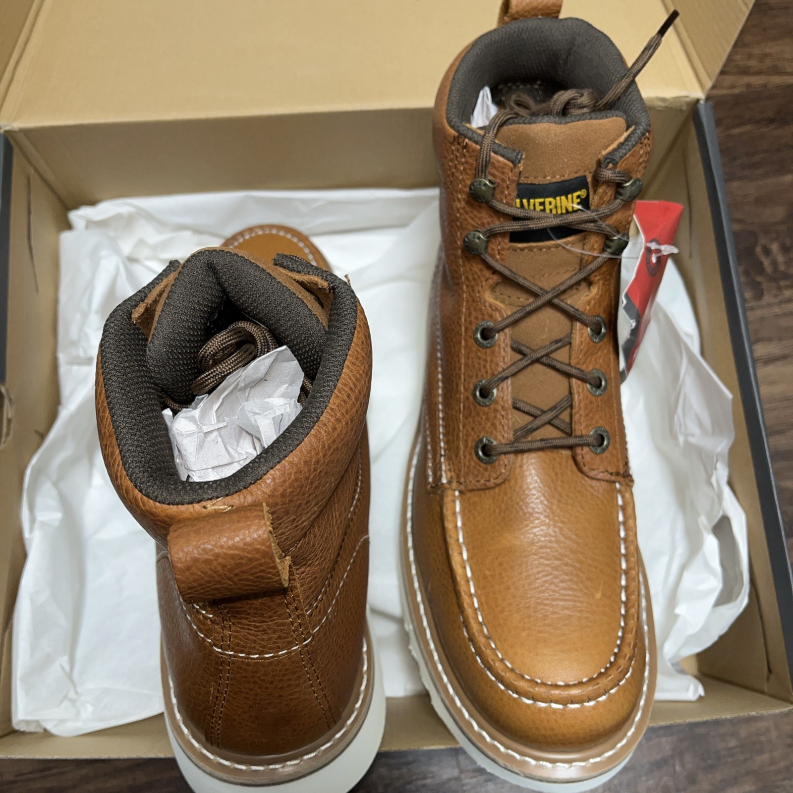 как выглядит Wolverine Men Wedge MocToe 6" Work Boot Soft Toe W08288 Brown 100 Original 10.5 фото