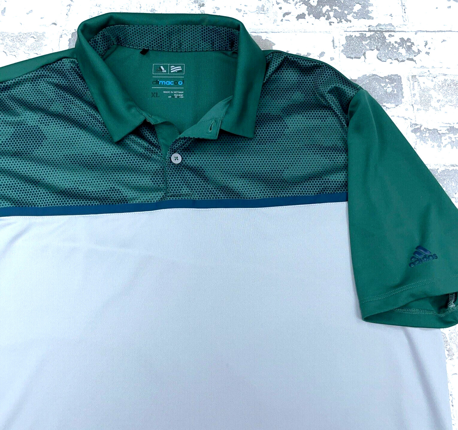 Adidas Polo Shirt Men XL Green Gray Camo Performance Golf Clima Cool Tennis