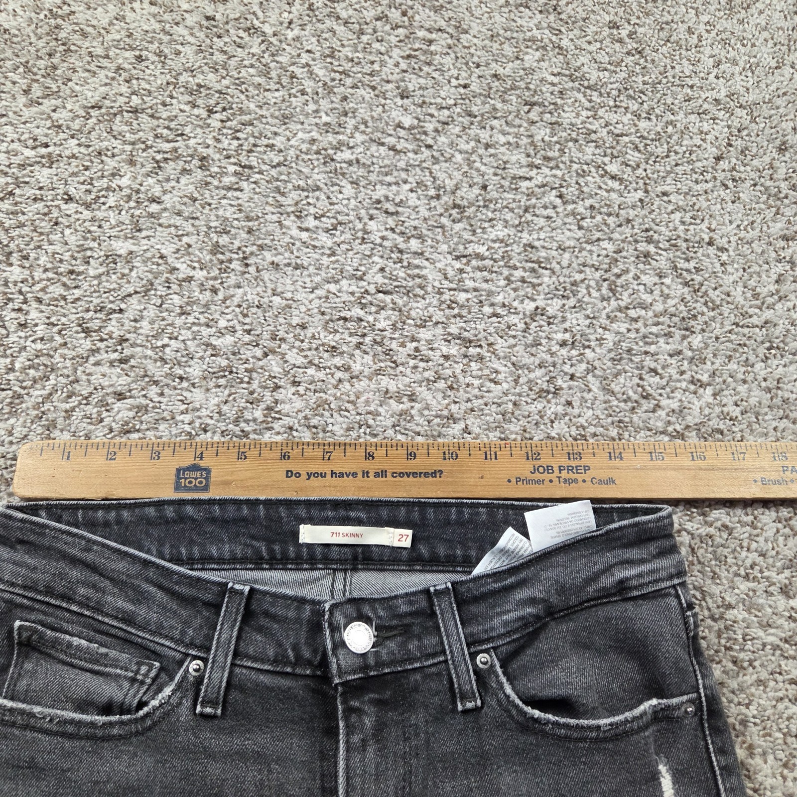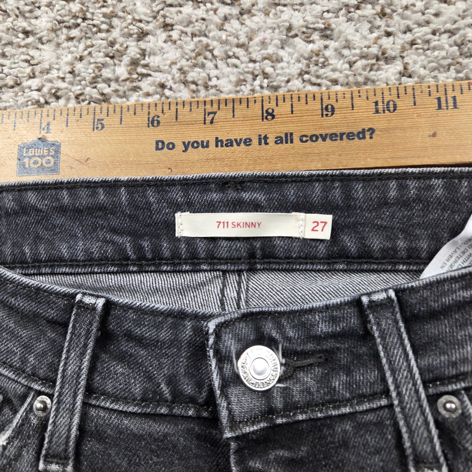 как выглядит Levis 711 Jeans Womens 27 Black Skinny Stretch Denim Distressed фото