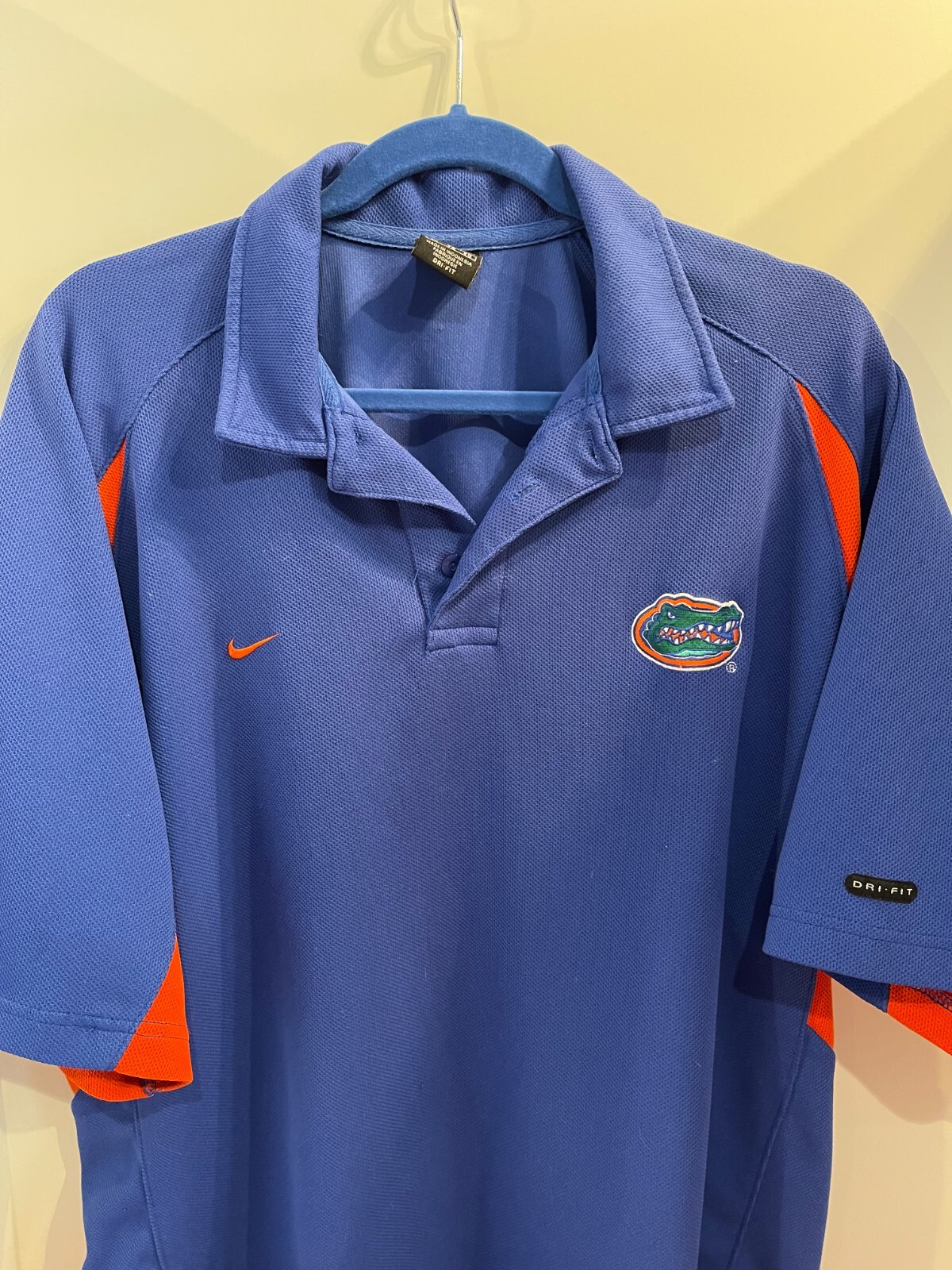 • Nike Team Florida Gators Polo Shirt w/Logo Orange Blue Mens XL DRI-FIT