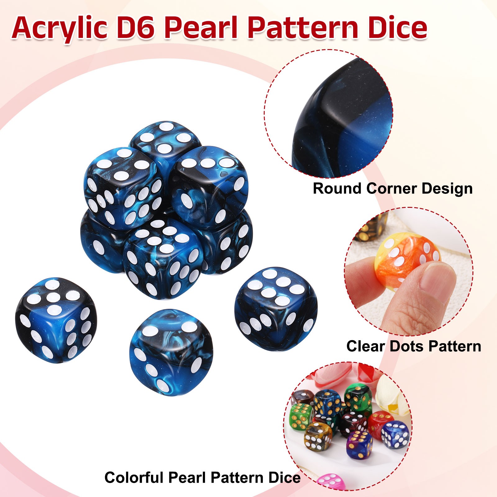 как выглядит 24Pcs 6 Sided Colored Standard Dice, Acrylic D6 Game Dice, Black/Blue, White фото