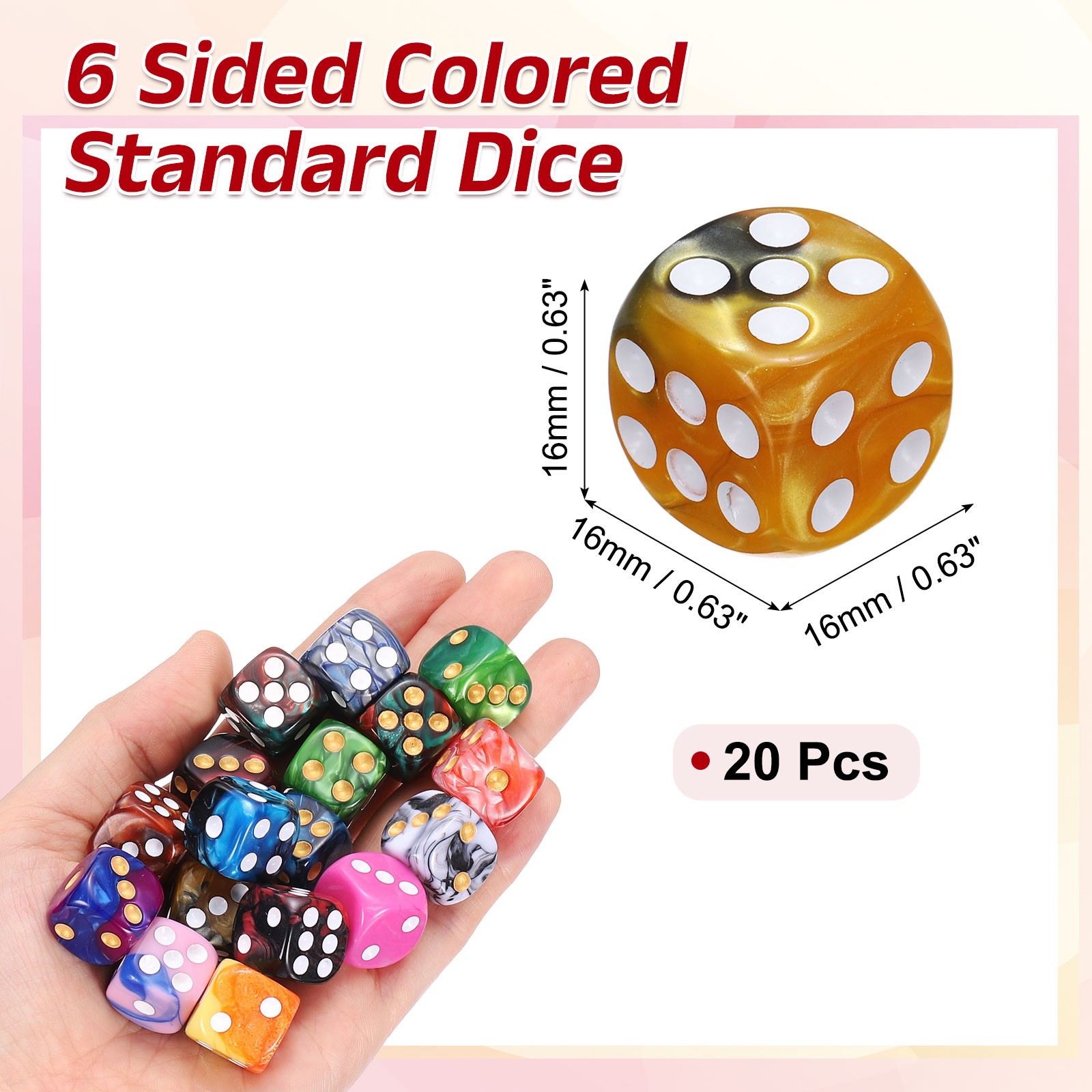 как выглядит 20Pcs 6 Sided Colored Standard Dice, Acrylic D6 Game Dice, Black/Yellow, White фото