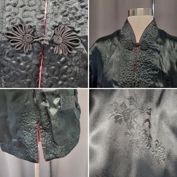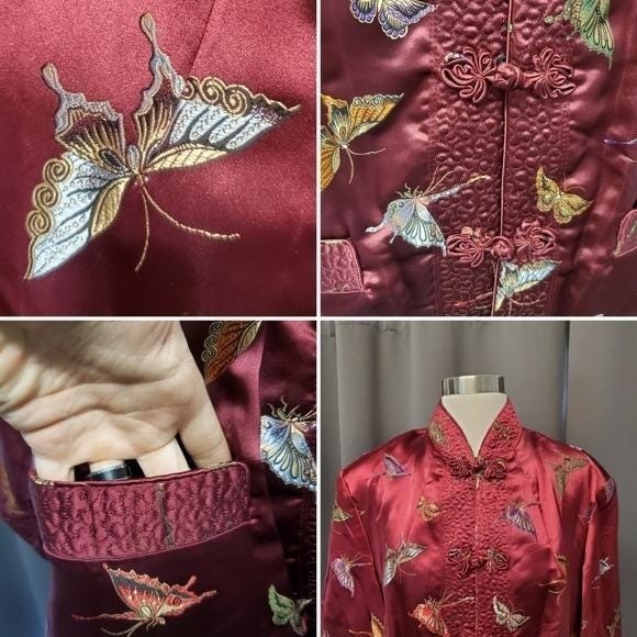 как выглядит Cheongsam Qipao Reversible Red and Black Oriental Robe Butterfly Pattern Coat Lg фото