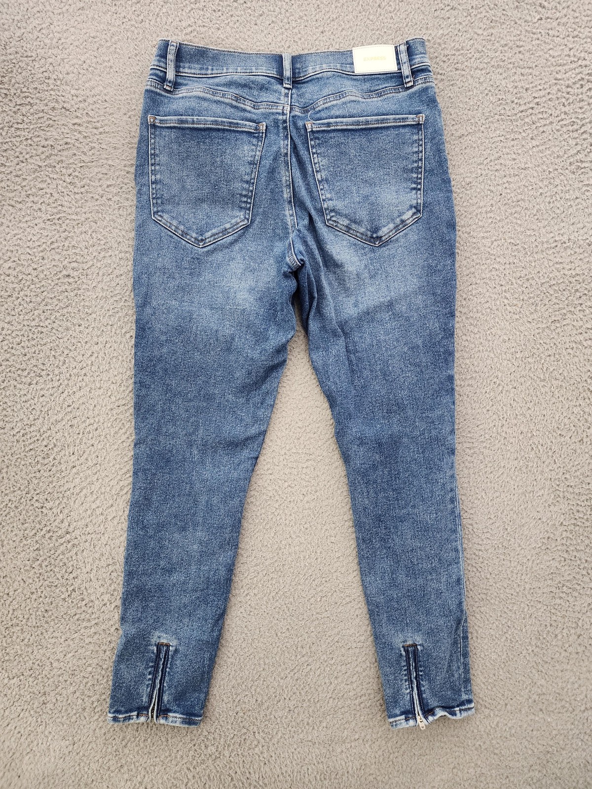 как выглядит Express Jeans Women 10R Light Wash Blue Skinny Mid Rise Stretch Ankle Zip Hem фото