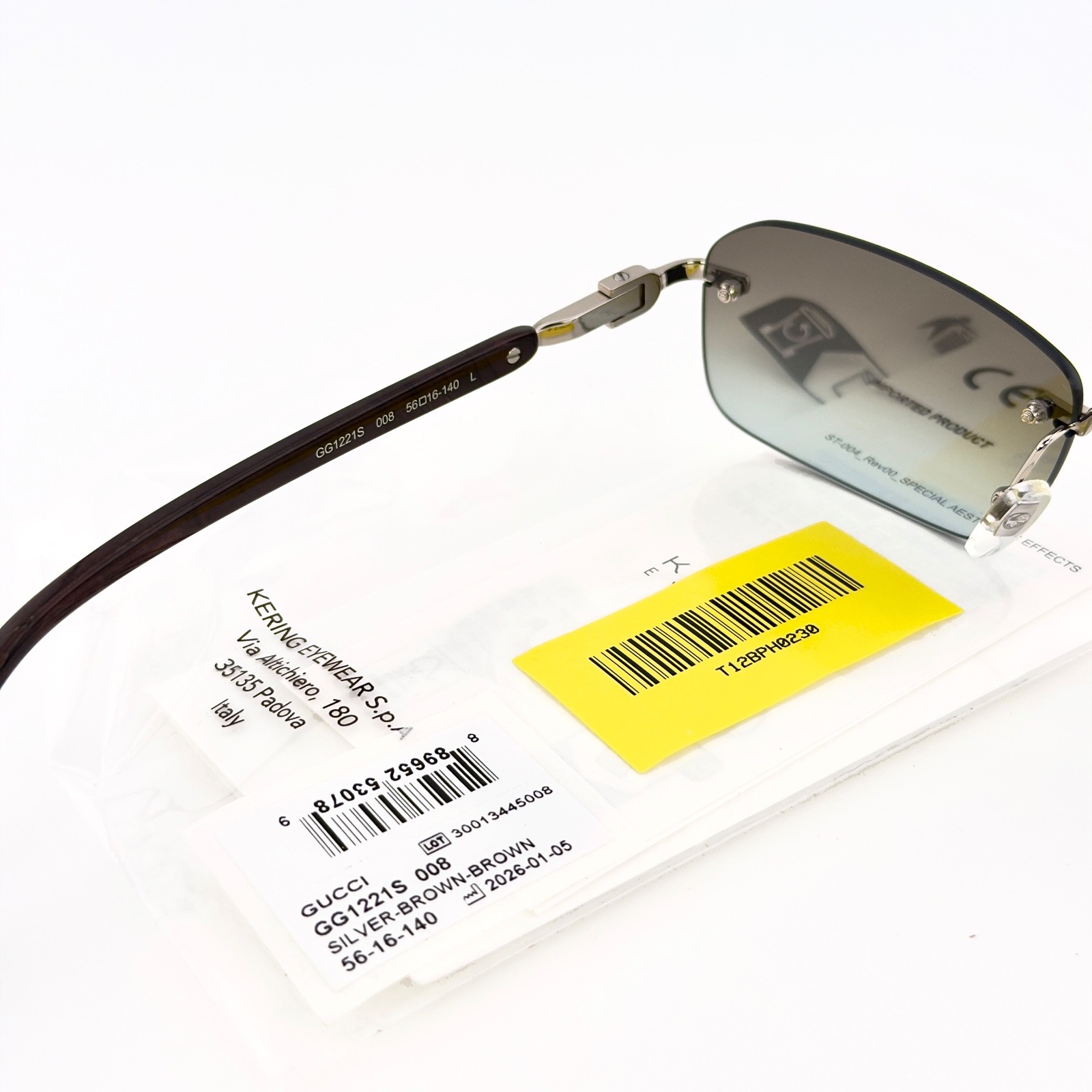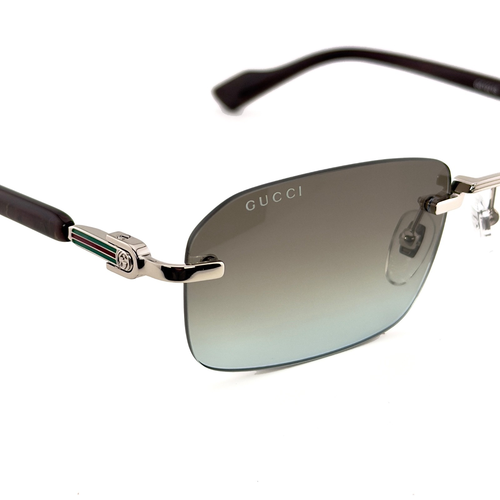 как выглядит GUCCI GG1221S WEB Logo 1221 Silver Brown 008 Rimless Narrow Unisex Sunglasses фото