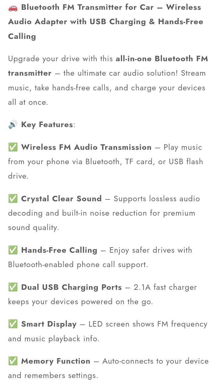 Car Bluetooth FM Transmitter Radio MP3 Wireless Adapter Car Kit USB Chargers