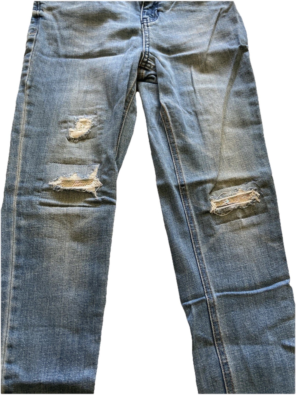 Cat Jack Skinny Adjustable Waist Distressed Patched Jeans Pants Girls Size 14