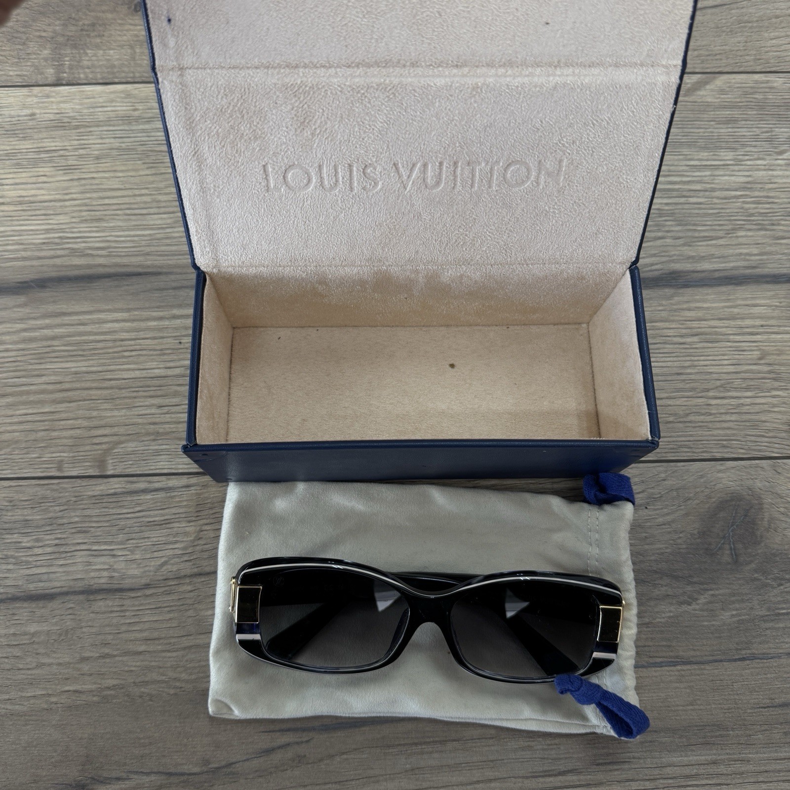 Louis Vuitton Sunglasses Black Gold Hardware LV Designer Shades w Case