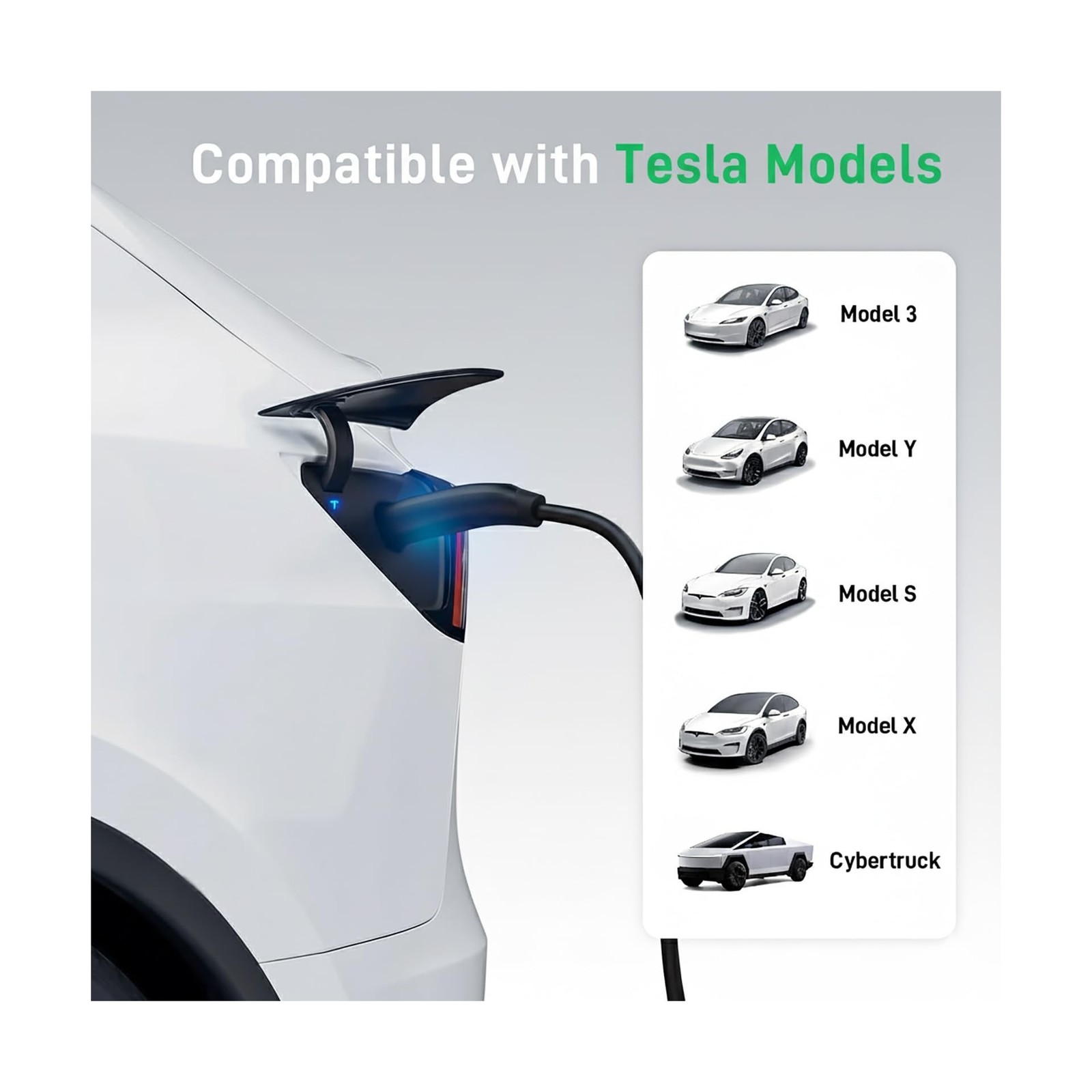 Tesla EV Charger Level 1/2, 9.6 kW 40A 240V, NEMA 14-50 Plug, 25' Cable, Adju...